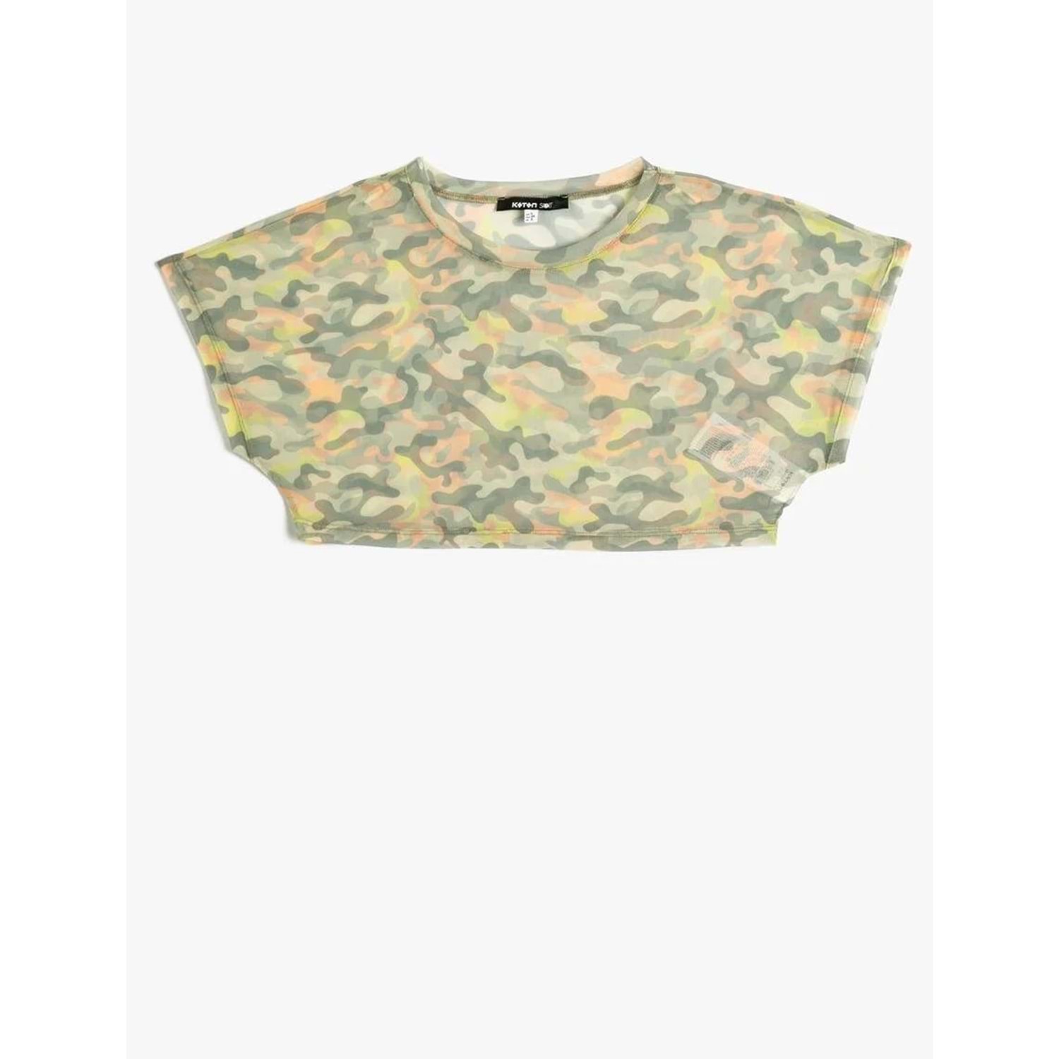 Transparan Crop Tişört Spor Kısa Kollu Bisiklet Yaka Kamuflaj Desenli - KOTON - 4SAK10067NK - YEŞİL DESENLİ - S
