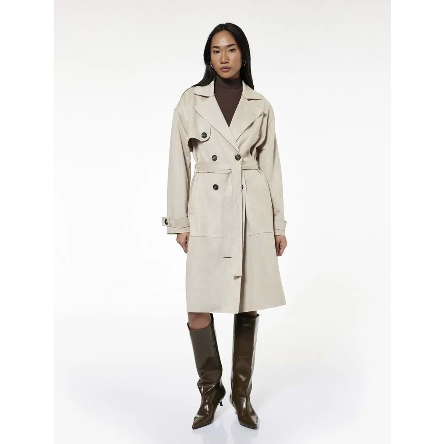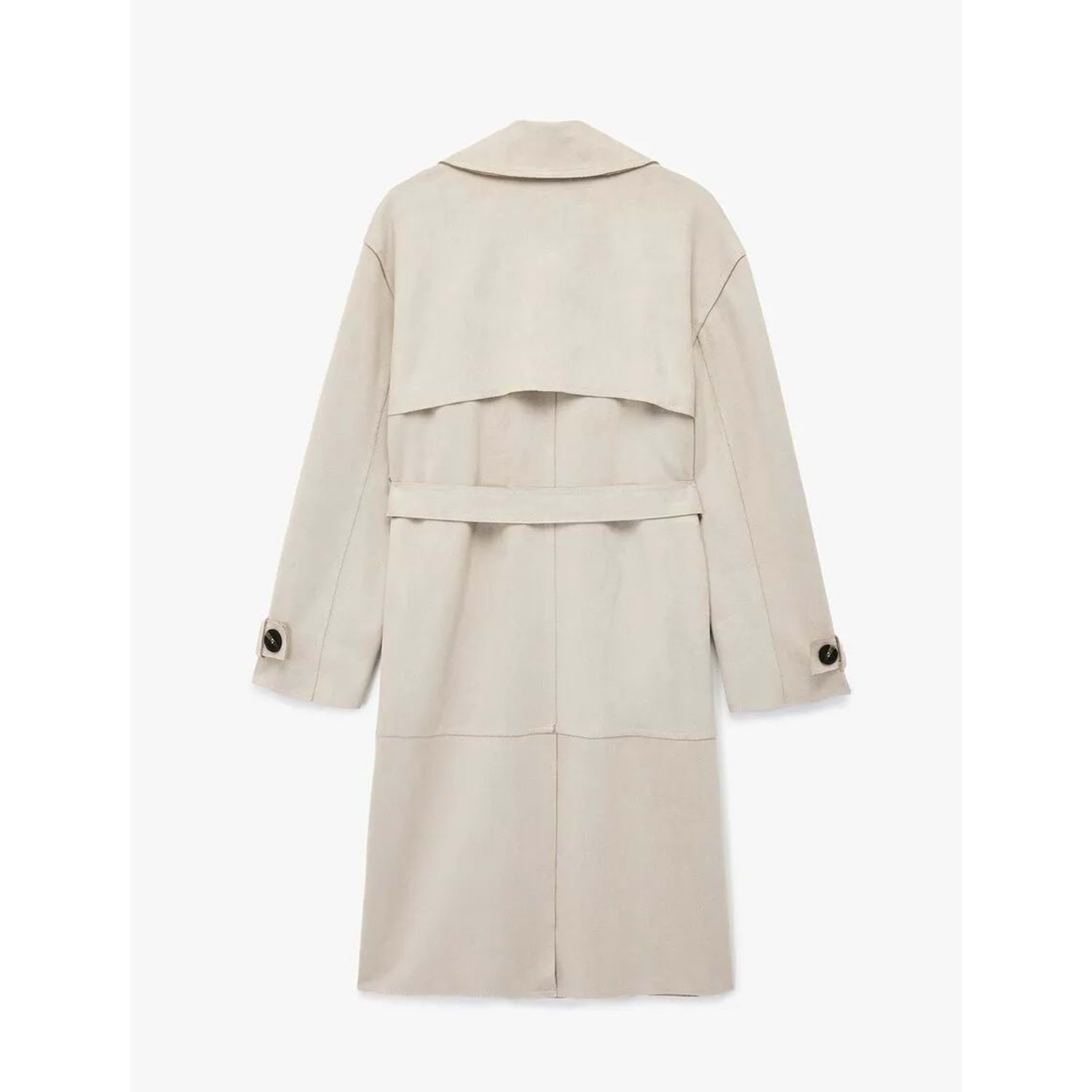 Uzun Kollu Cepli Kemerli Kruvaze Suni Süet Trençkot - 6WAK00194EW - Taş - 42