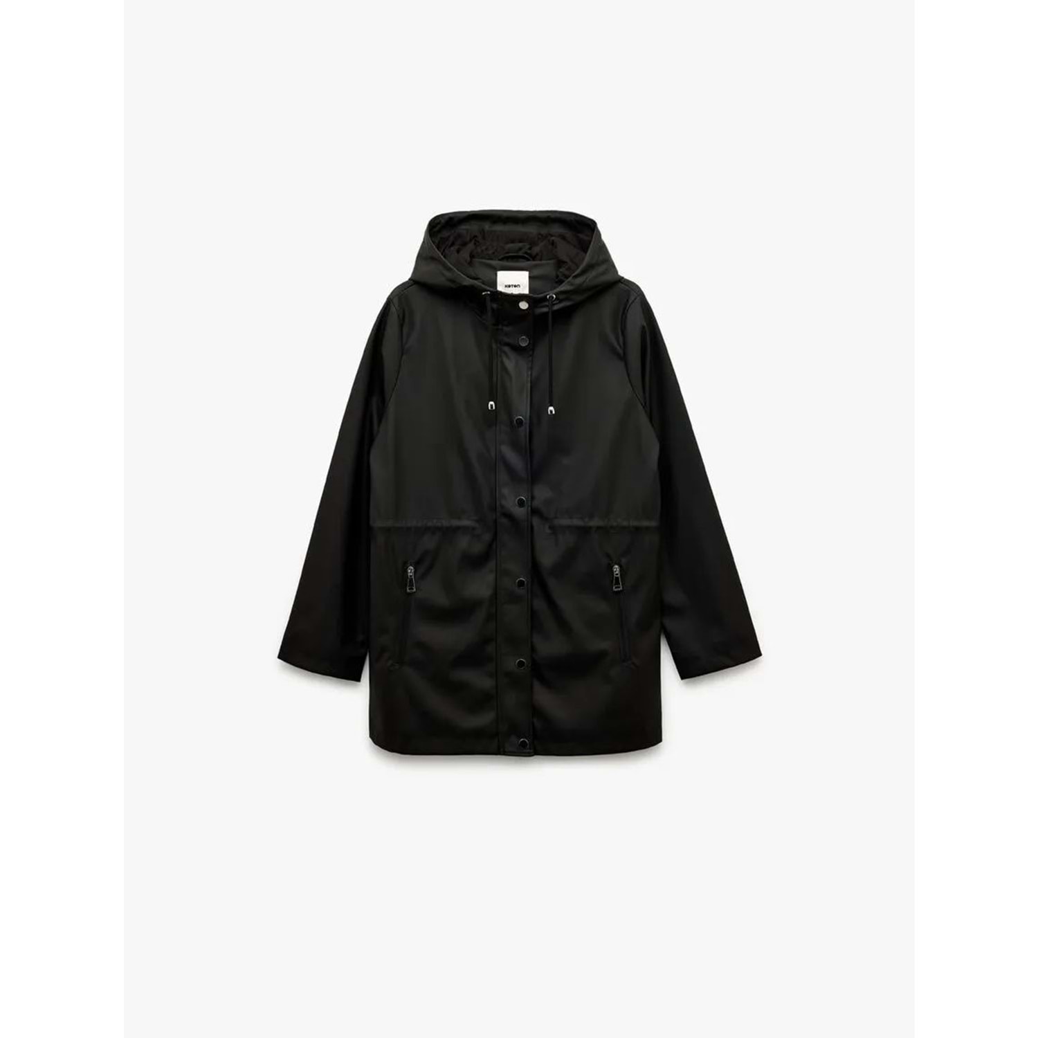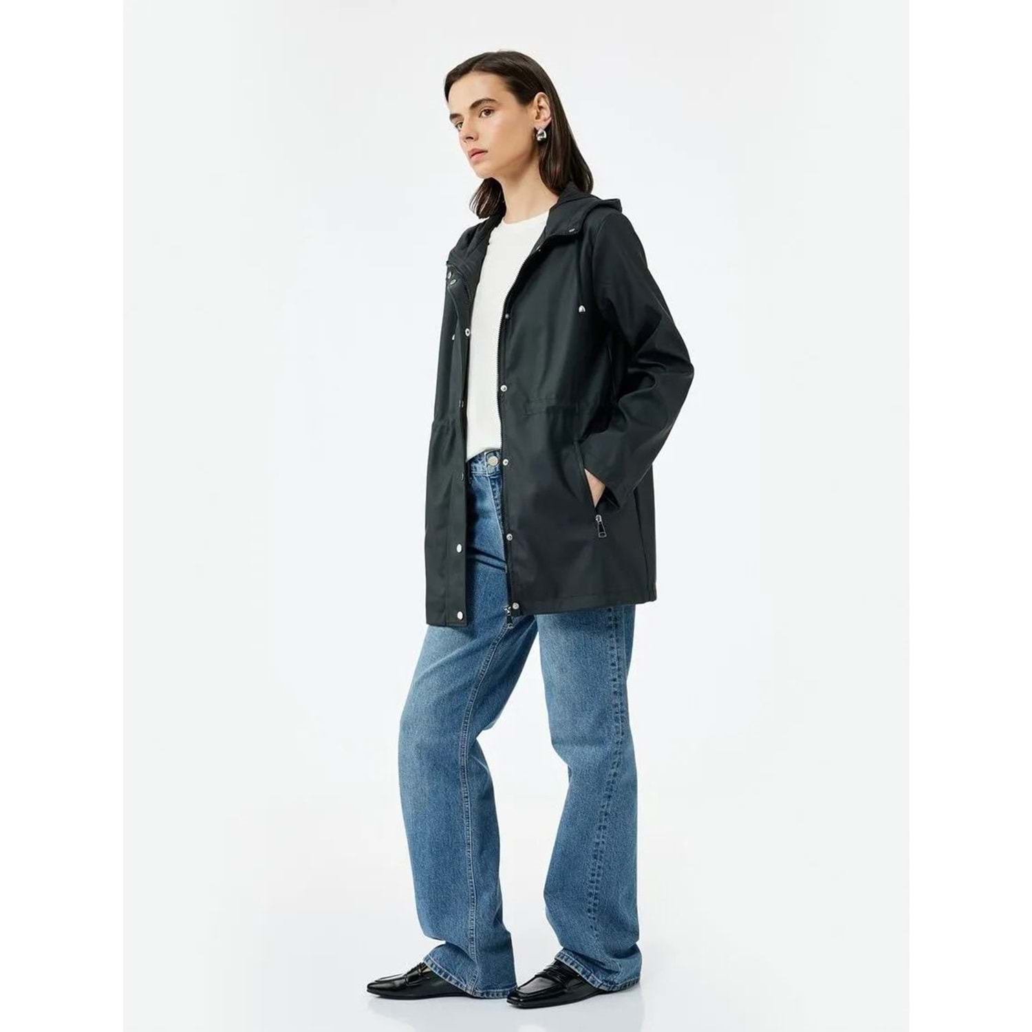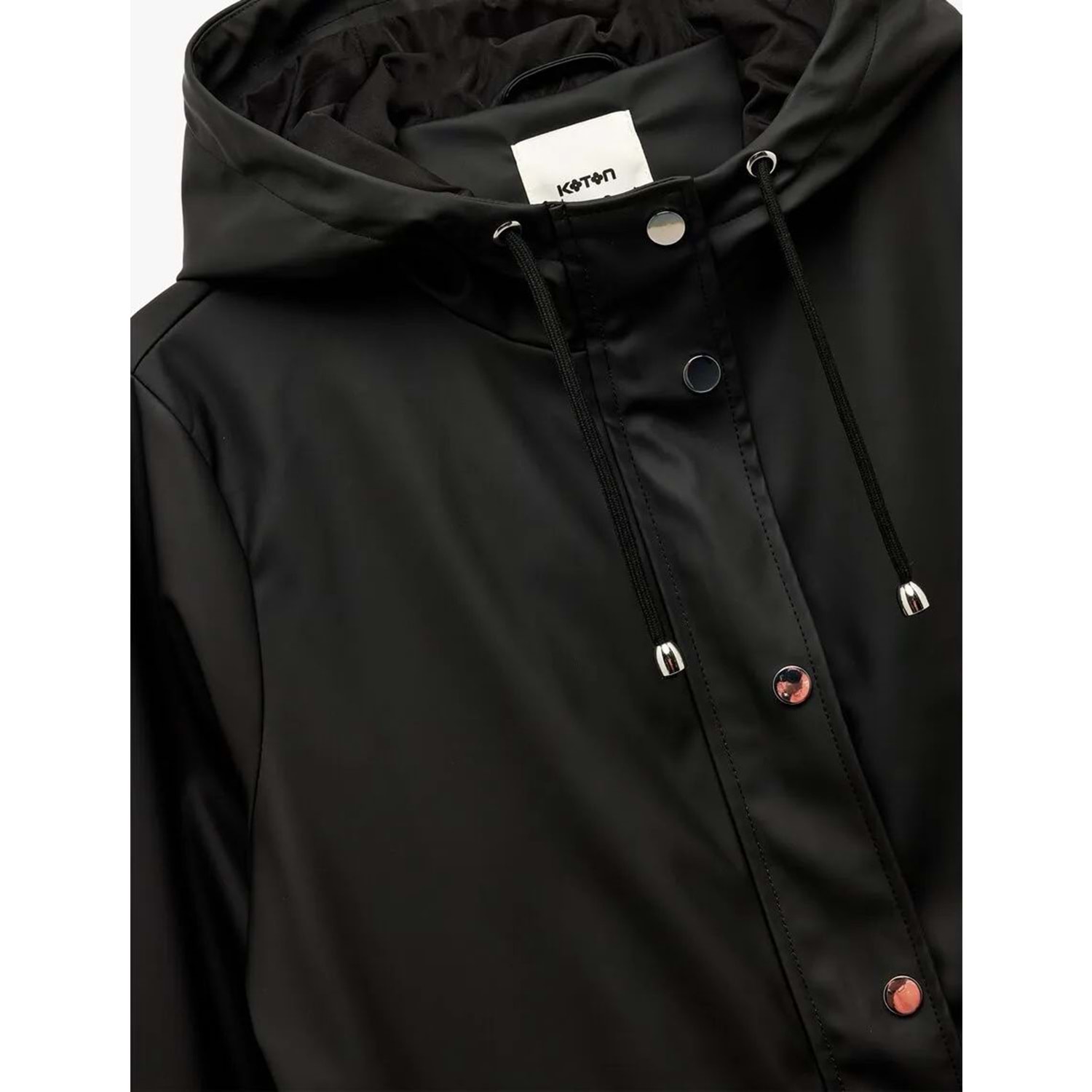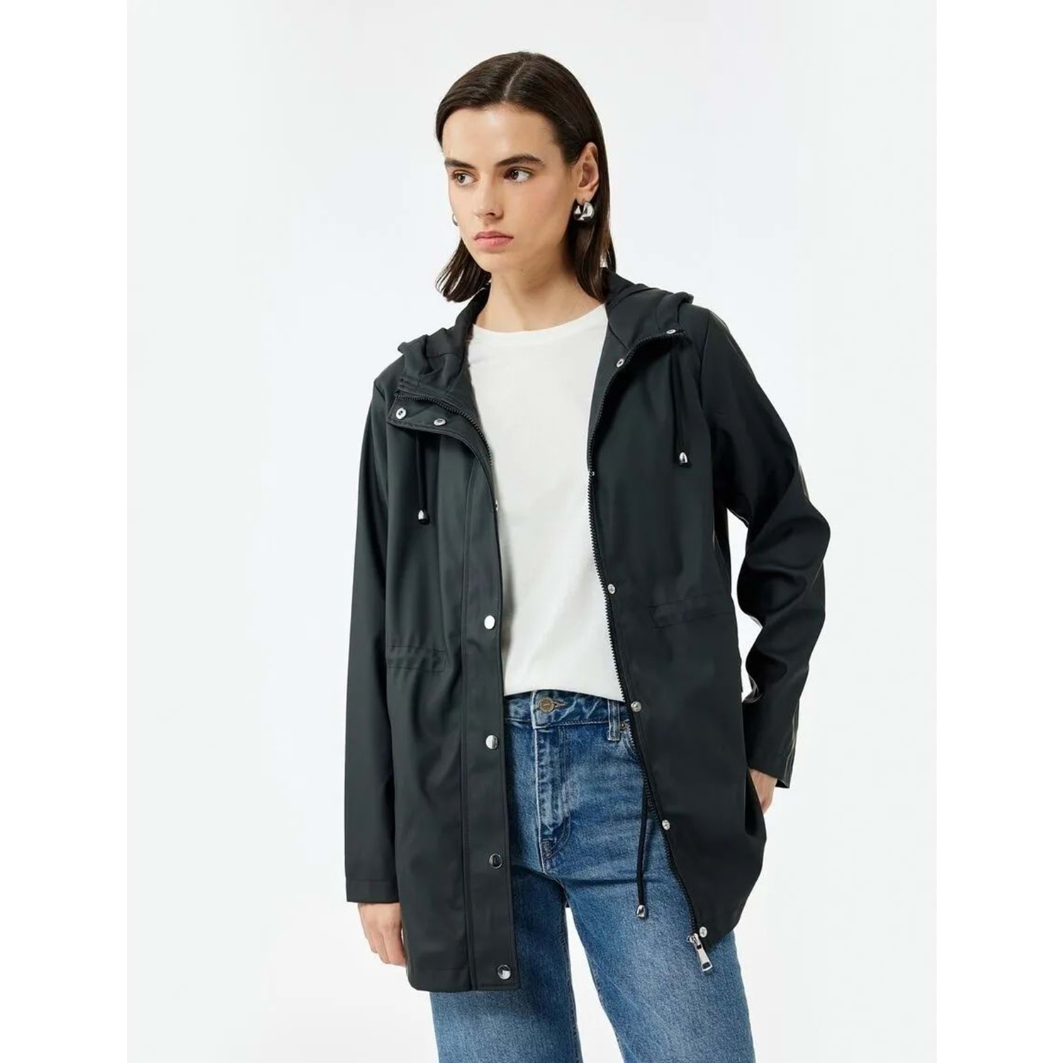 Kadın Giyim Cepli Beli Bağlamalı Uzun Kollu Fermuarlı Kapüşonlu Yağmurluk - KOTON - 6WAK00007EW - SİYAH - 34