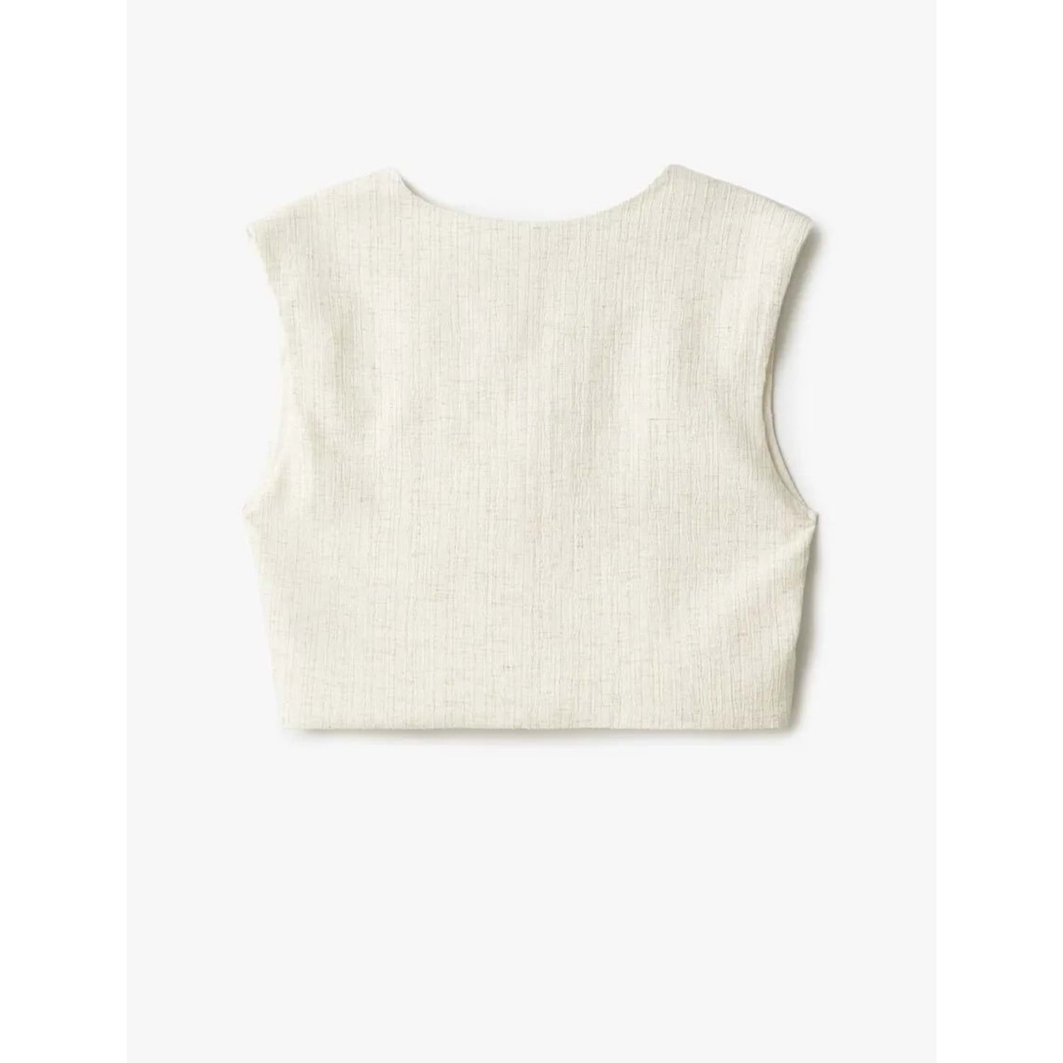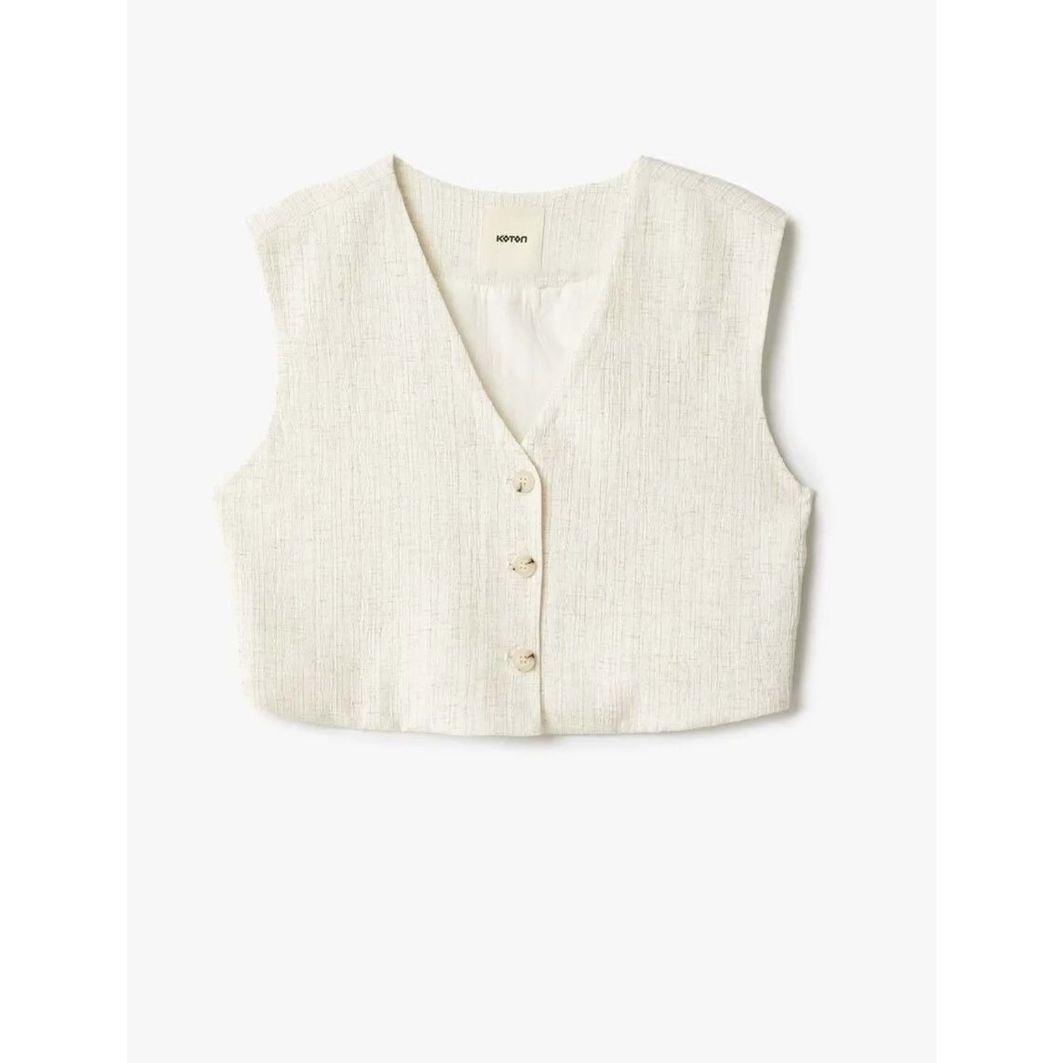 Düğmeli Crop Blazer Yelek 5SAK20031PW - KOTON - BEJ - 42