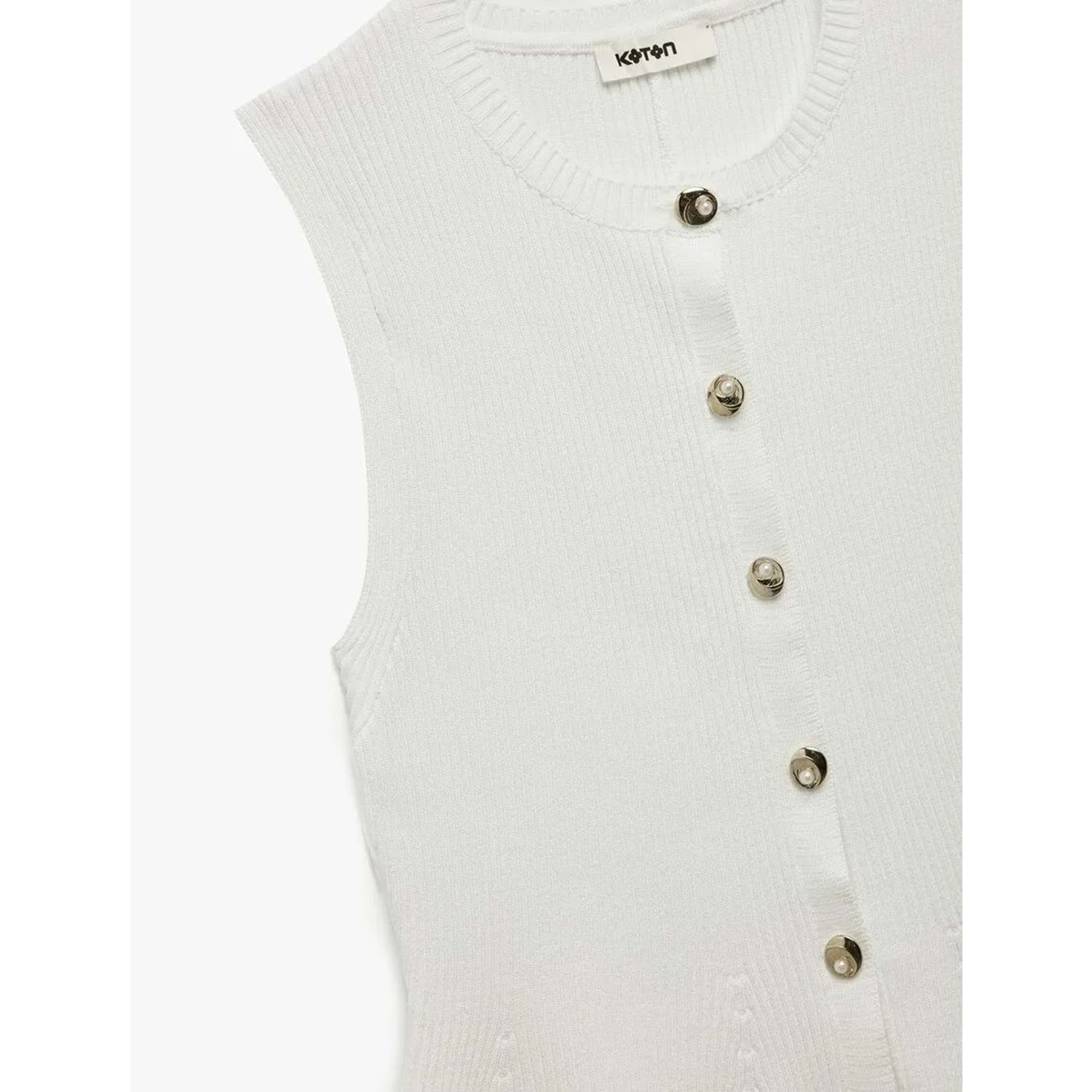 Kadın Giyim Düğmeli Bisiklet Yaka Peplum Kesim Triko Yelek - KOTON - 6WAK30022HT - EKRU - M