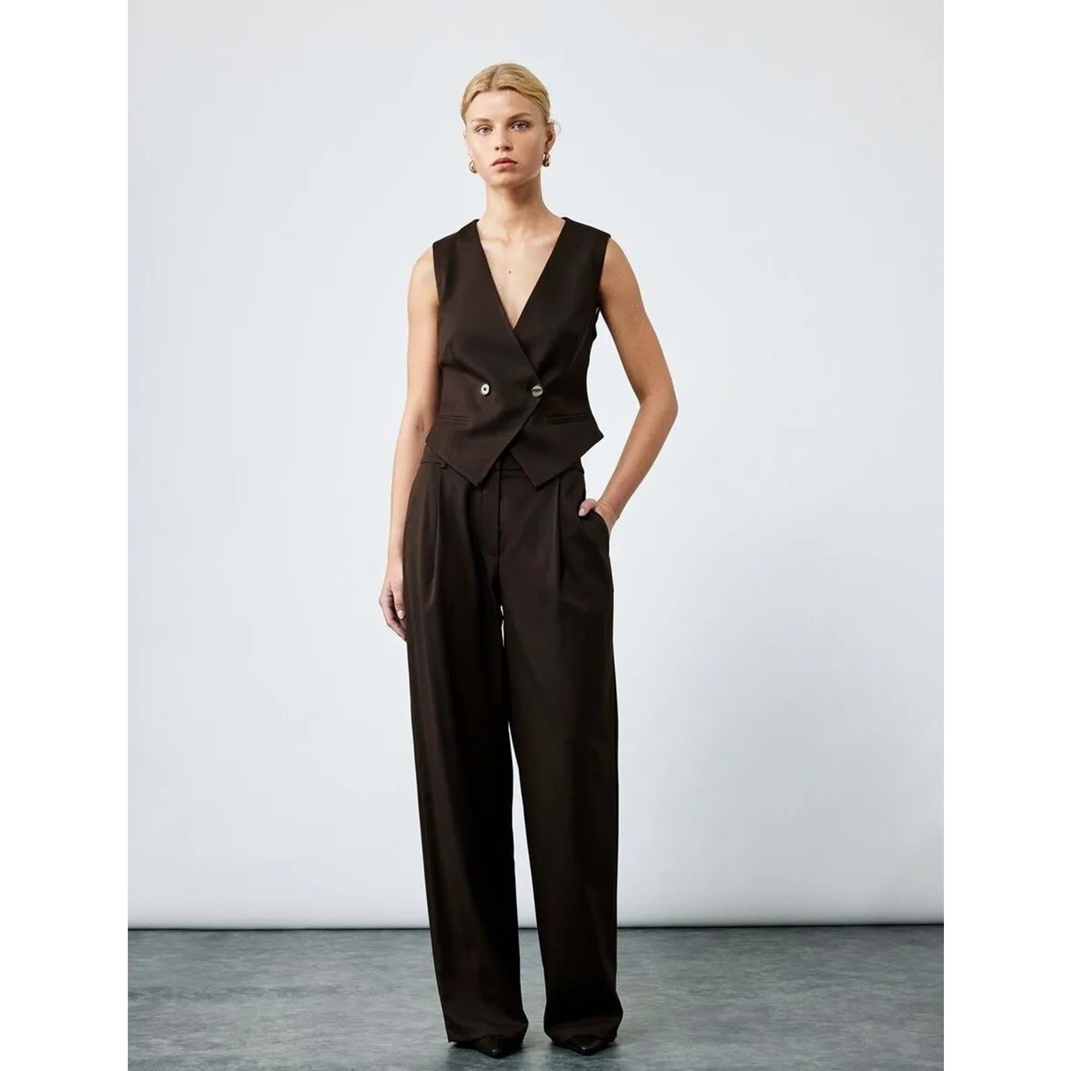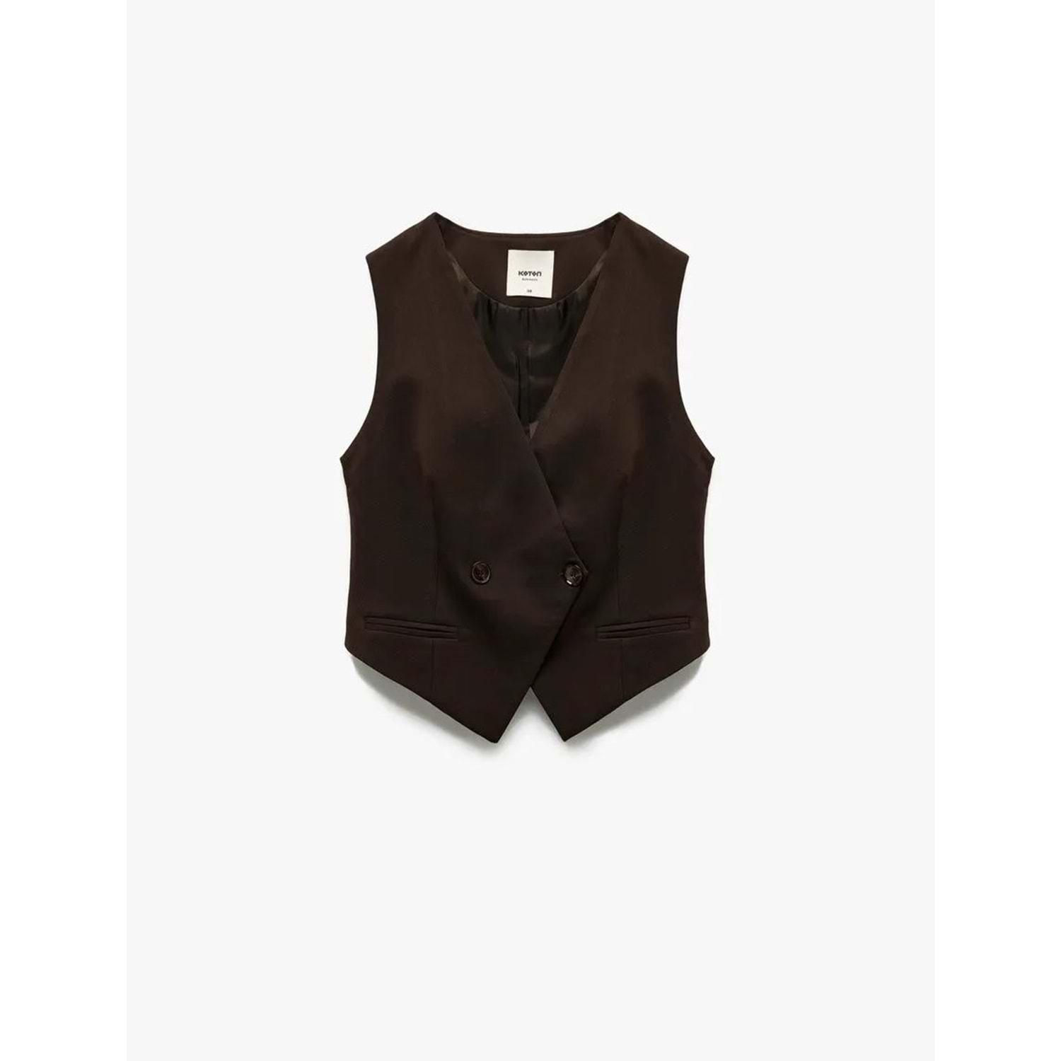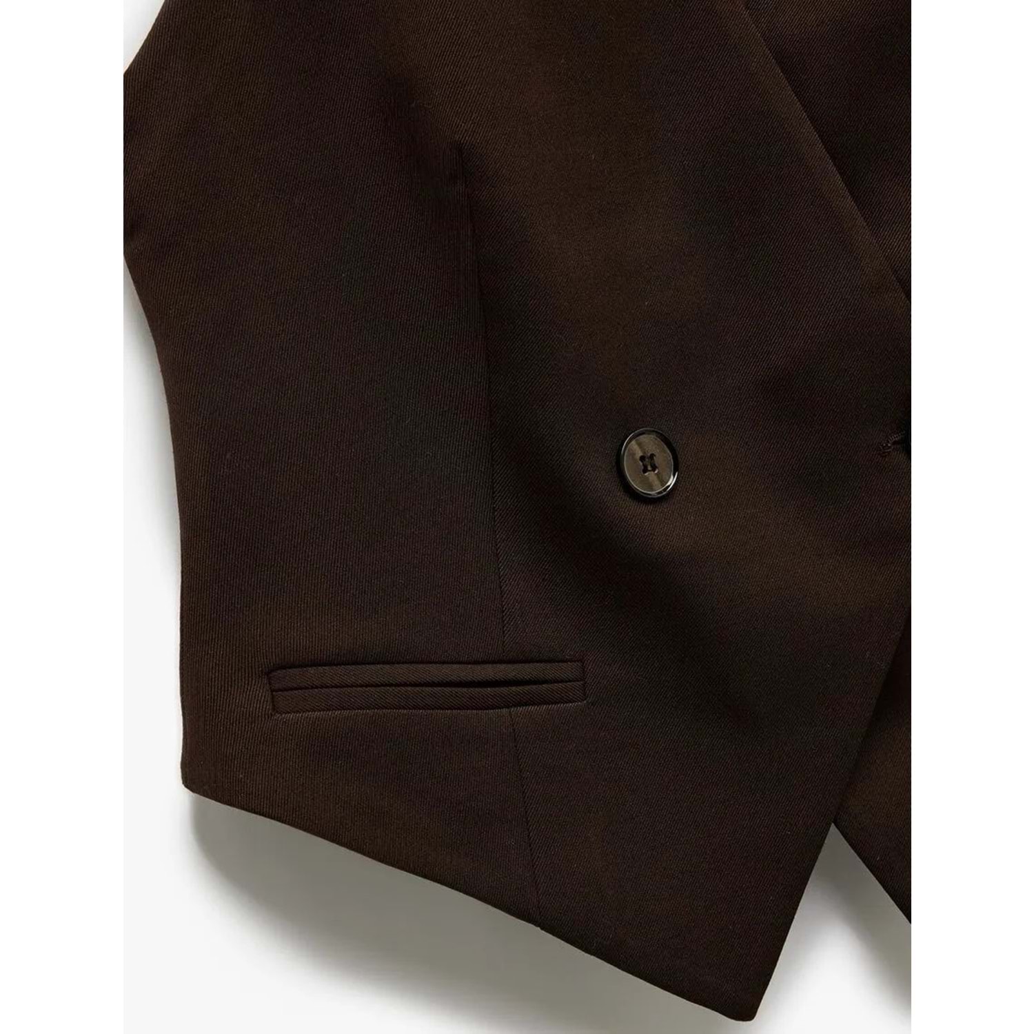 Kadın Giyim Düğmeli Kolsuz V Yaka Blazer Yelek - KOTON - 6WAK20013UW - KAHVERENGİ - 36
