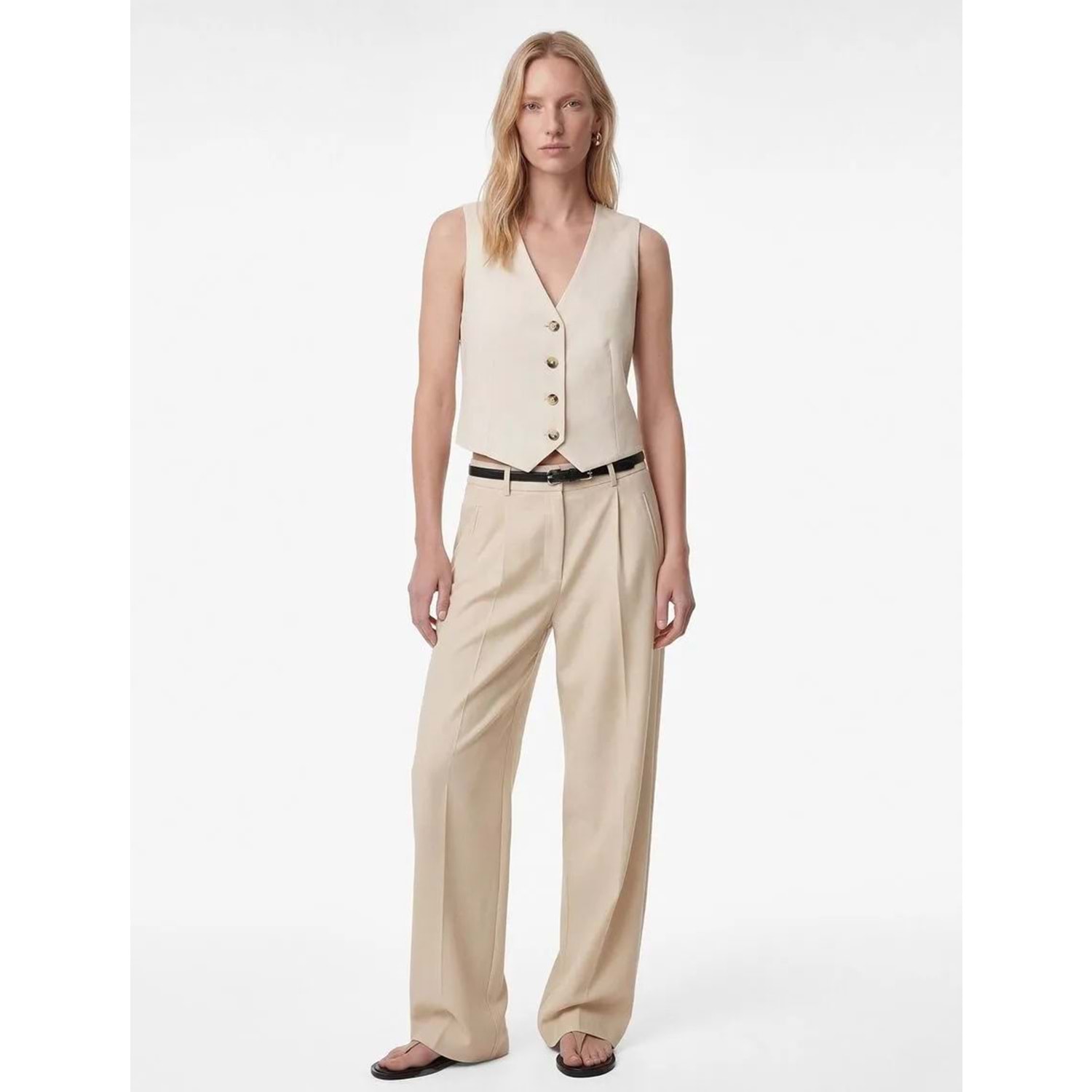Kadın Giyim Düğmeli Viskon Karışımlı Kolsuz V Yaka Yelek - KOTON - 6SAK20058UW - BEJ - 36