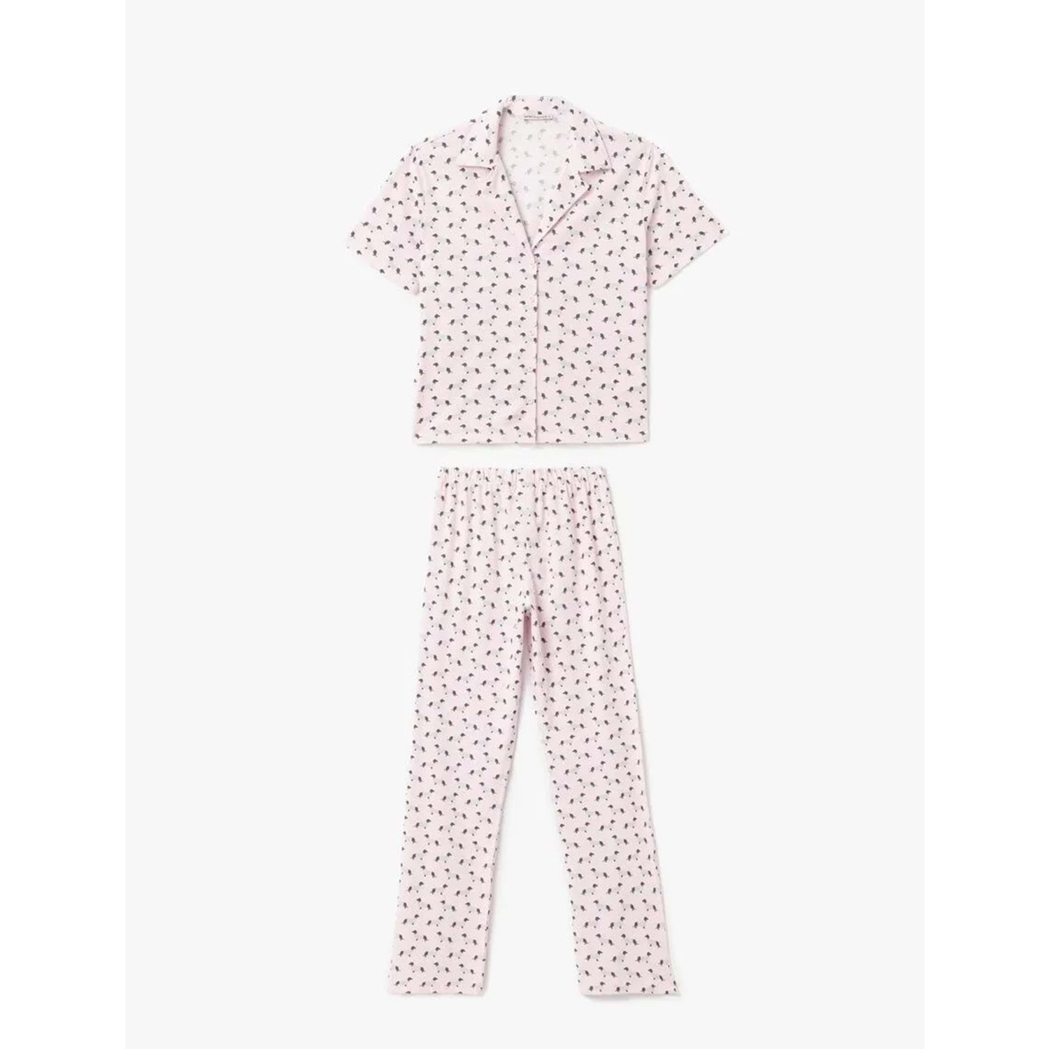 Köpek Grafik Baskılı Pamuklu Gömlek Yaka Pijama Takımı 5SLK40051MK - KOTON - PEMBE - S