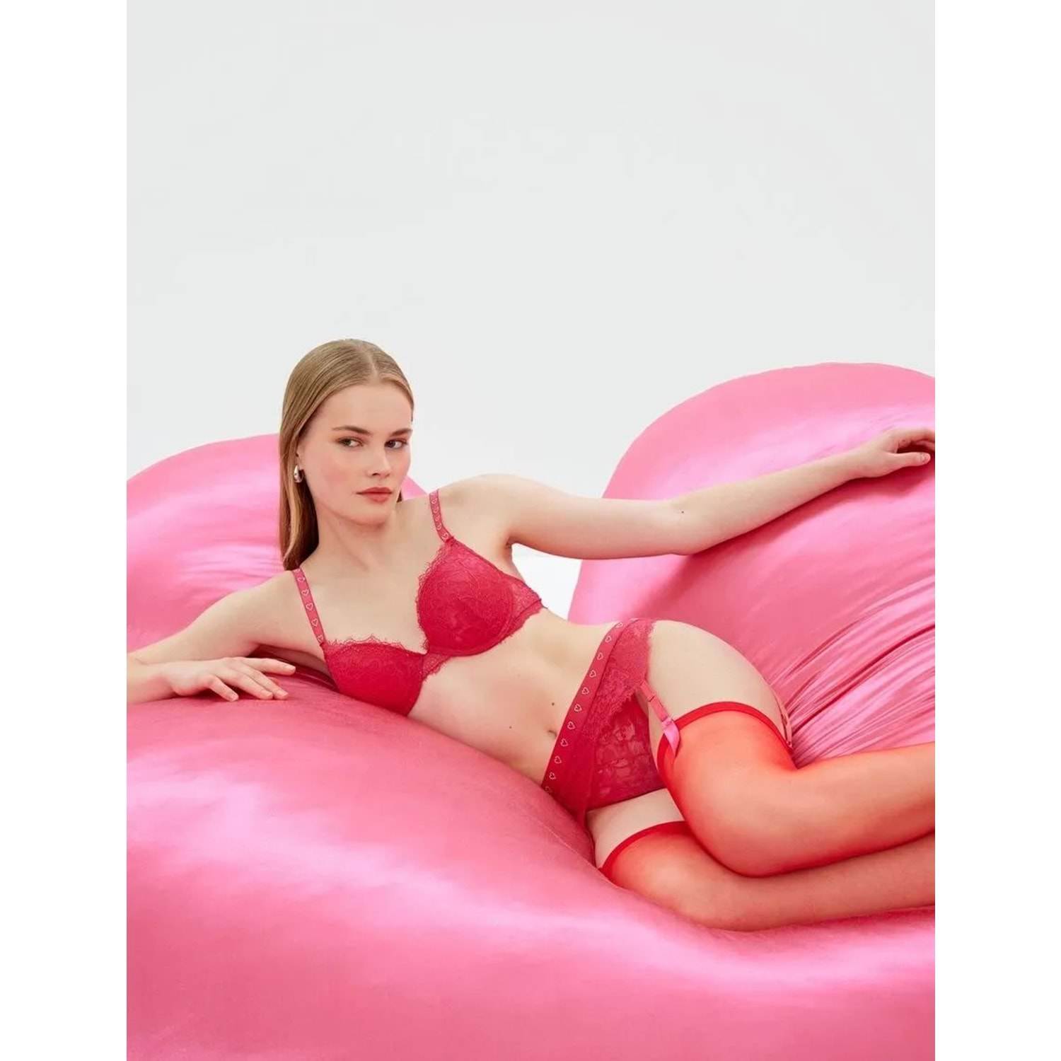 Destekli Kalpli Taş Detaylı Dantelli Sütyen 5SLK10046MK - KOTON - FUŞYA - 80A