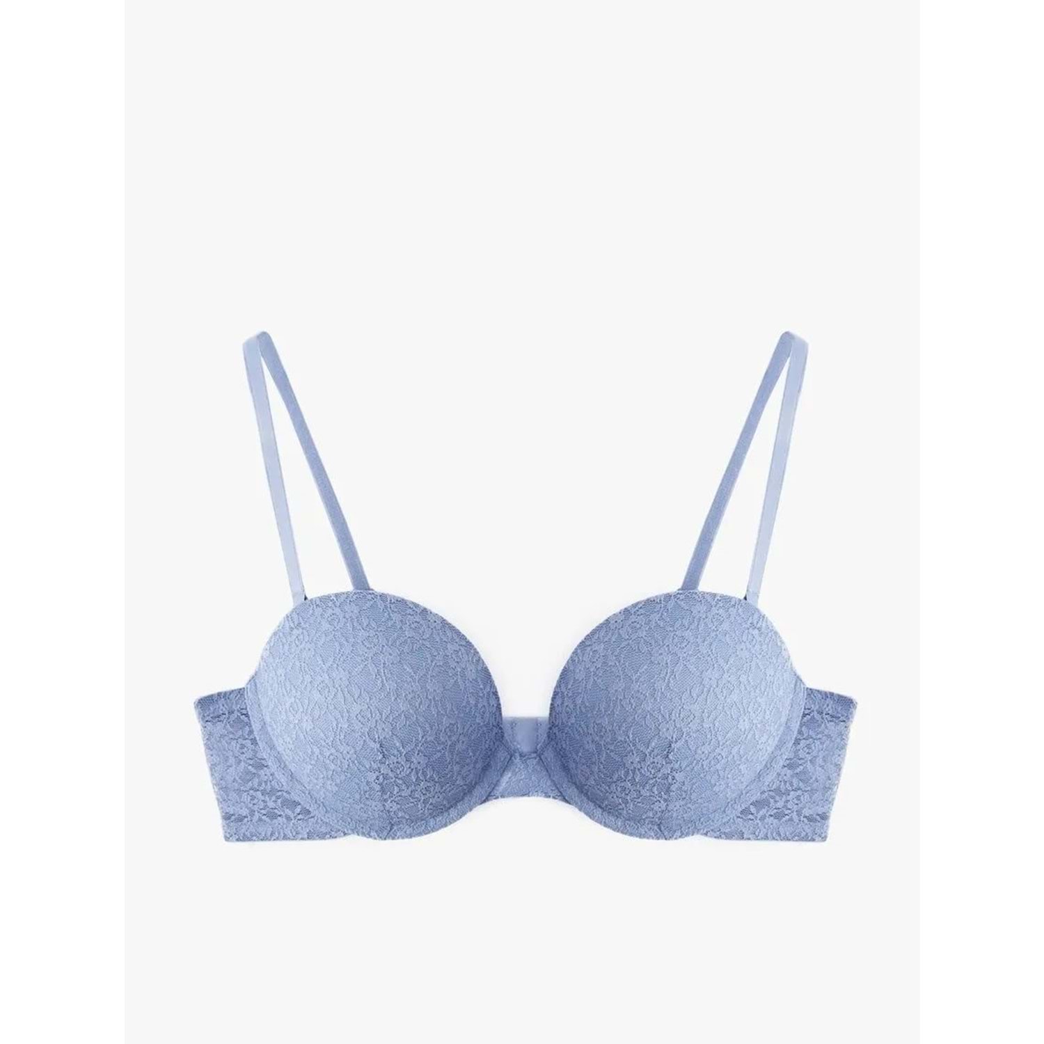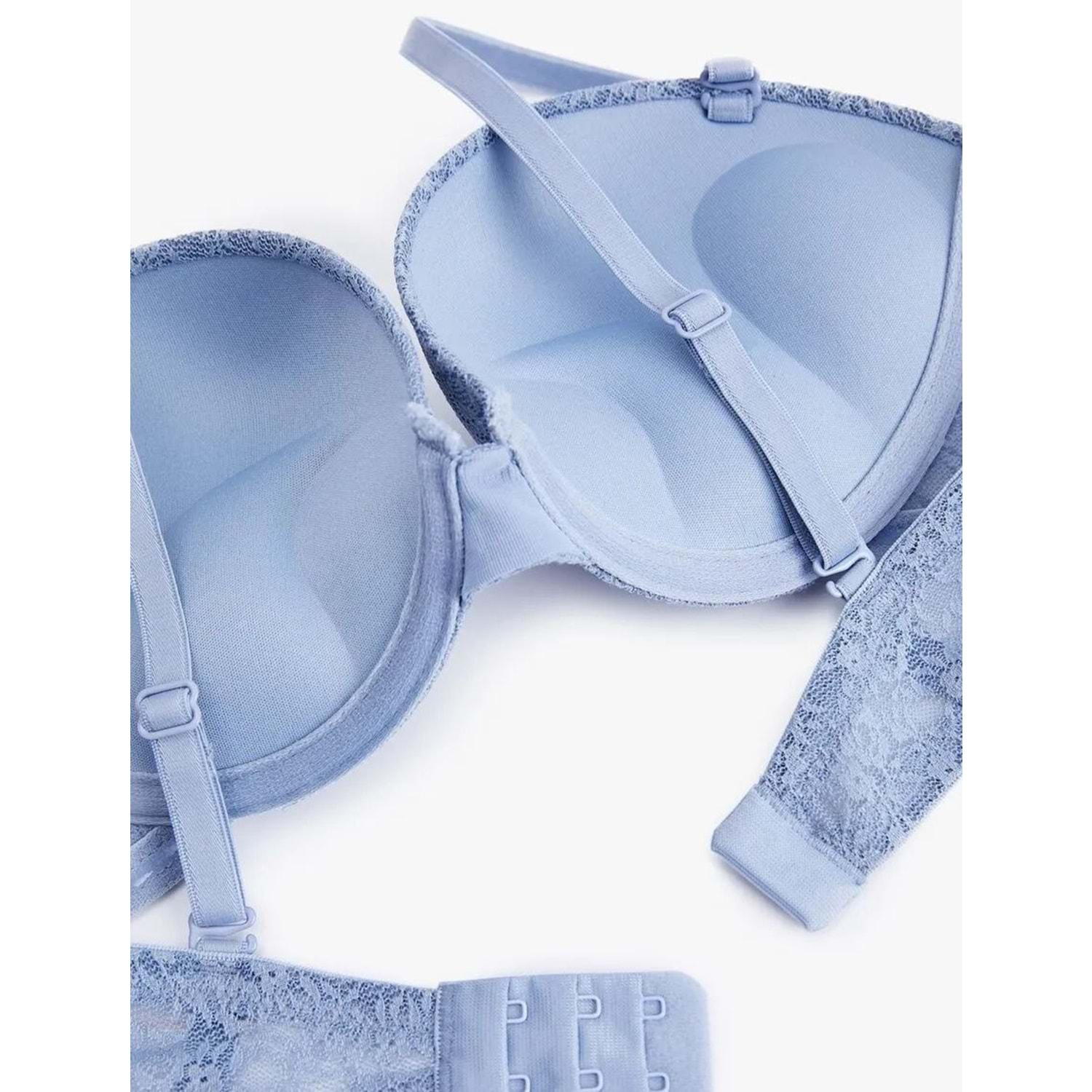 Kadın İç Giyim Çıkarılabilir Askılı Ekstra Dolgulu Maximizer Destekli Dantelli Sütyen - KOTON - 6WLK10023MK - MAVİ - 80B