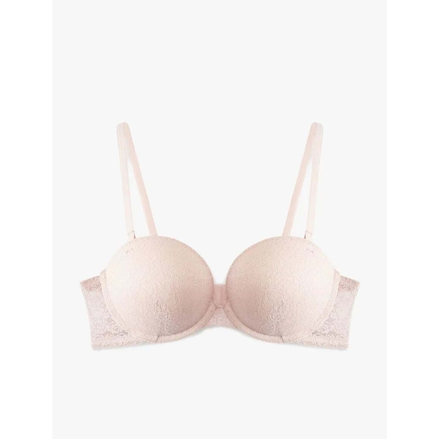 Kadın İç Giyim Çıkarılabilir Askılı Ekstra Dolgulu Maximizer Destekli Dantelli Sütyen - KOTON - 6WLK10023MK - PEMBE - 75B