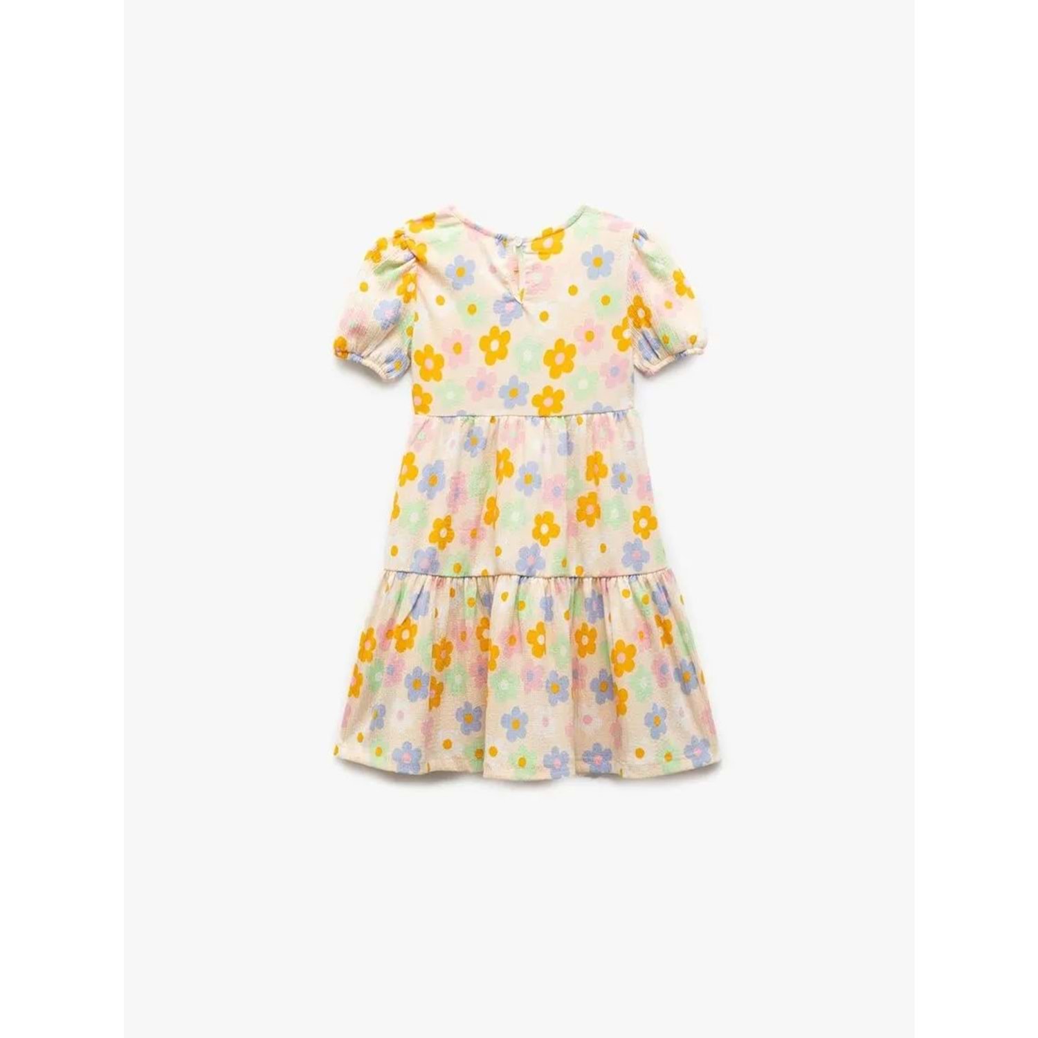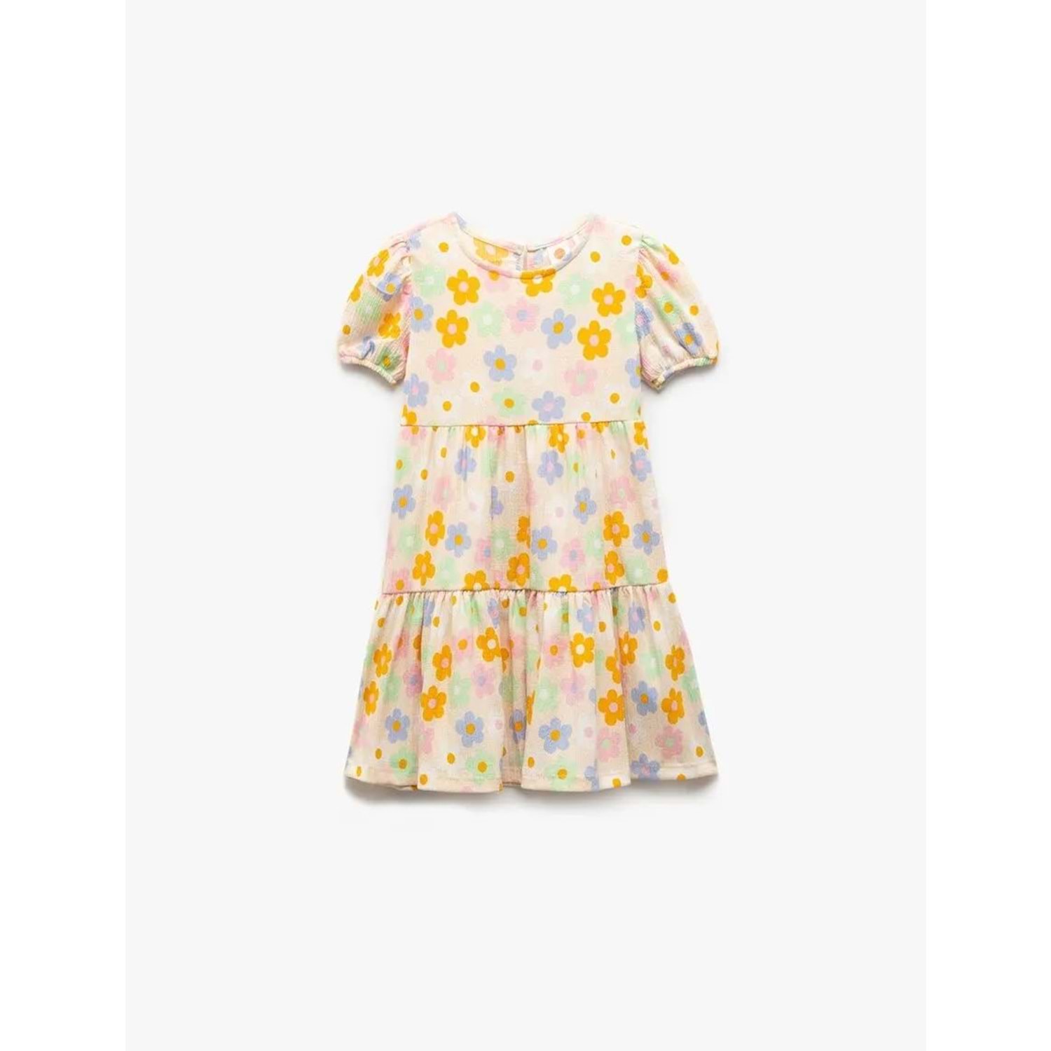 Kız Bebek Bisiklet Yaka Balon Kollu Katlı Çiçekli Elbise 5SMG80003AK - KOTON - BEJ - 12-18 AY