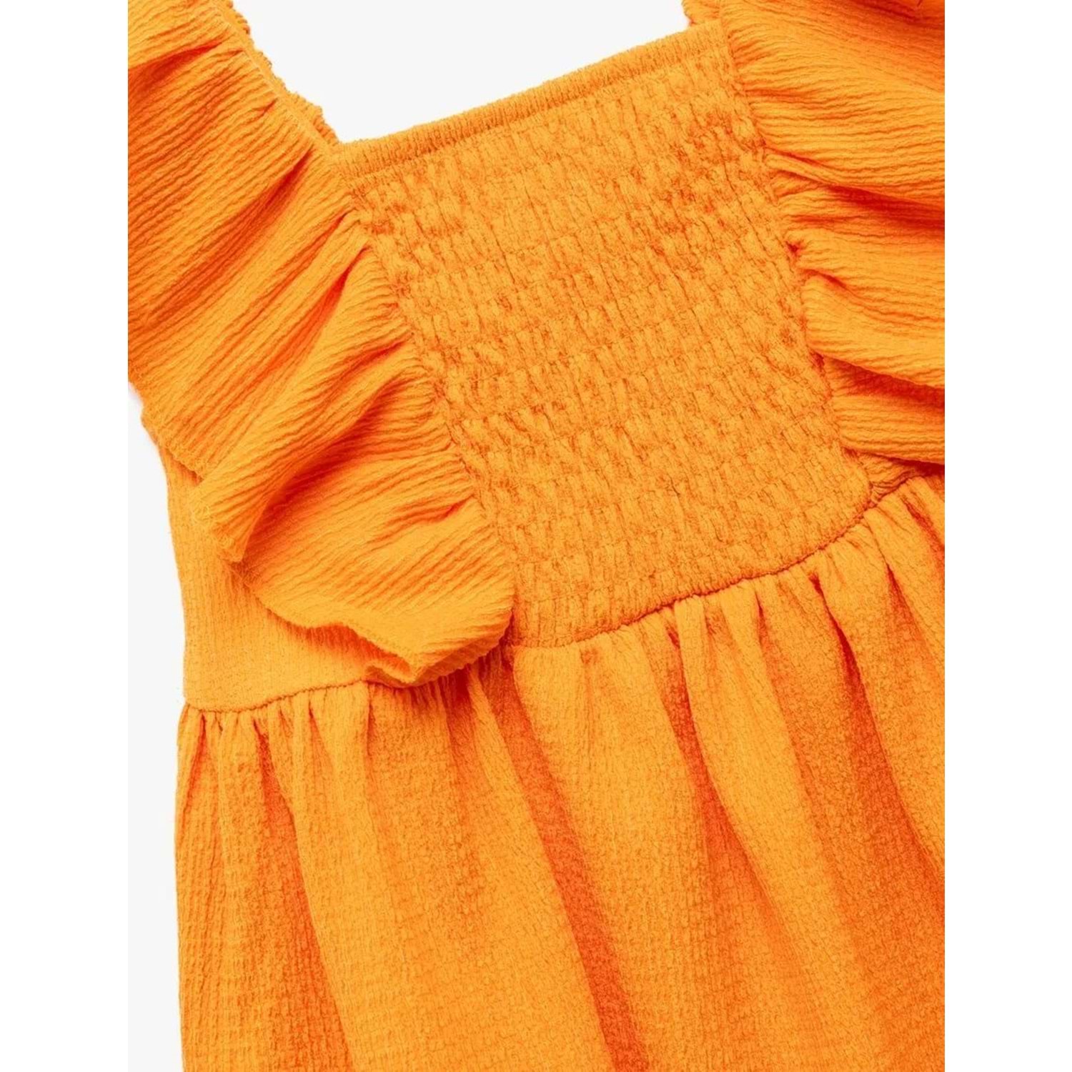 Kız Bebek Giyim Kalın Askılı Fırfırlı Gipe Detaylı Dokulu Elbise 5SMG80008AK - KOTON - TURUNCU - 3-4 YAŞ