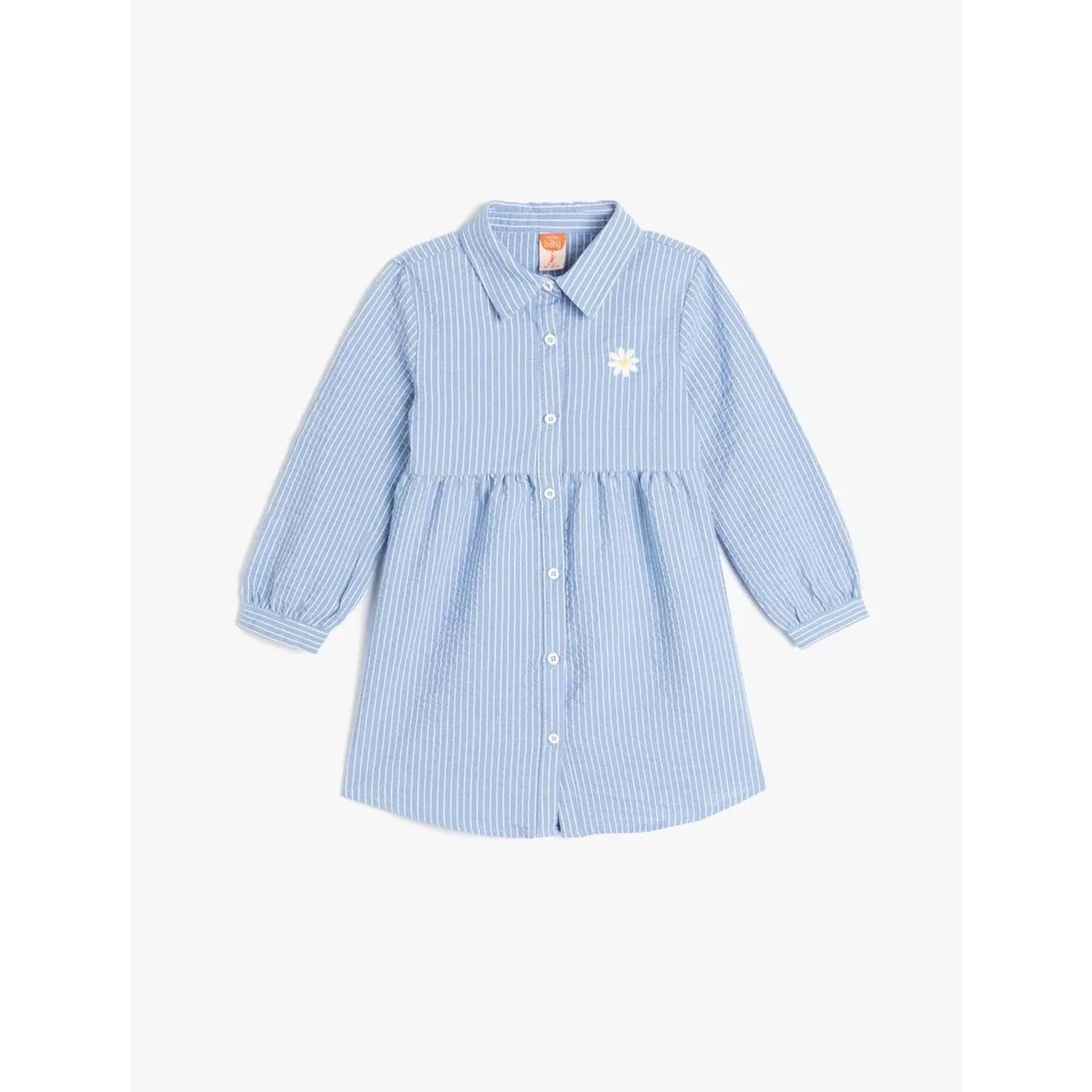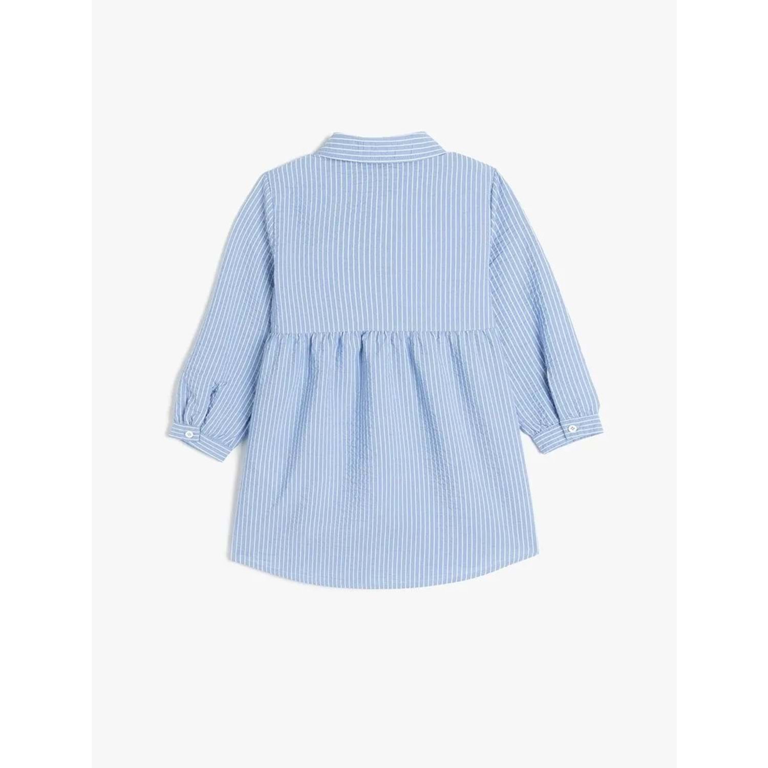 Kız Bebek Gömlek Yaka Uzun Kollu Nakış Detaylı Çizgili Elbise 5SMG80069AW - KOTON - MAVİ - 18-24 AY