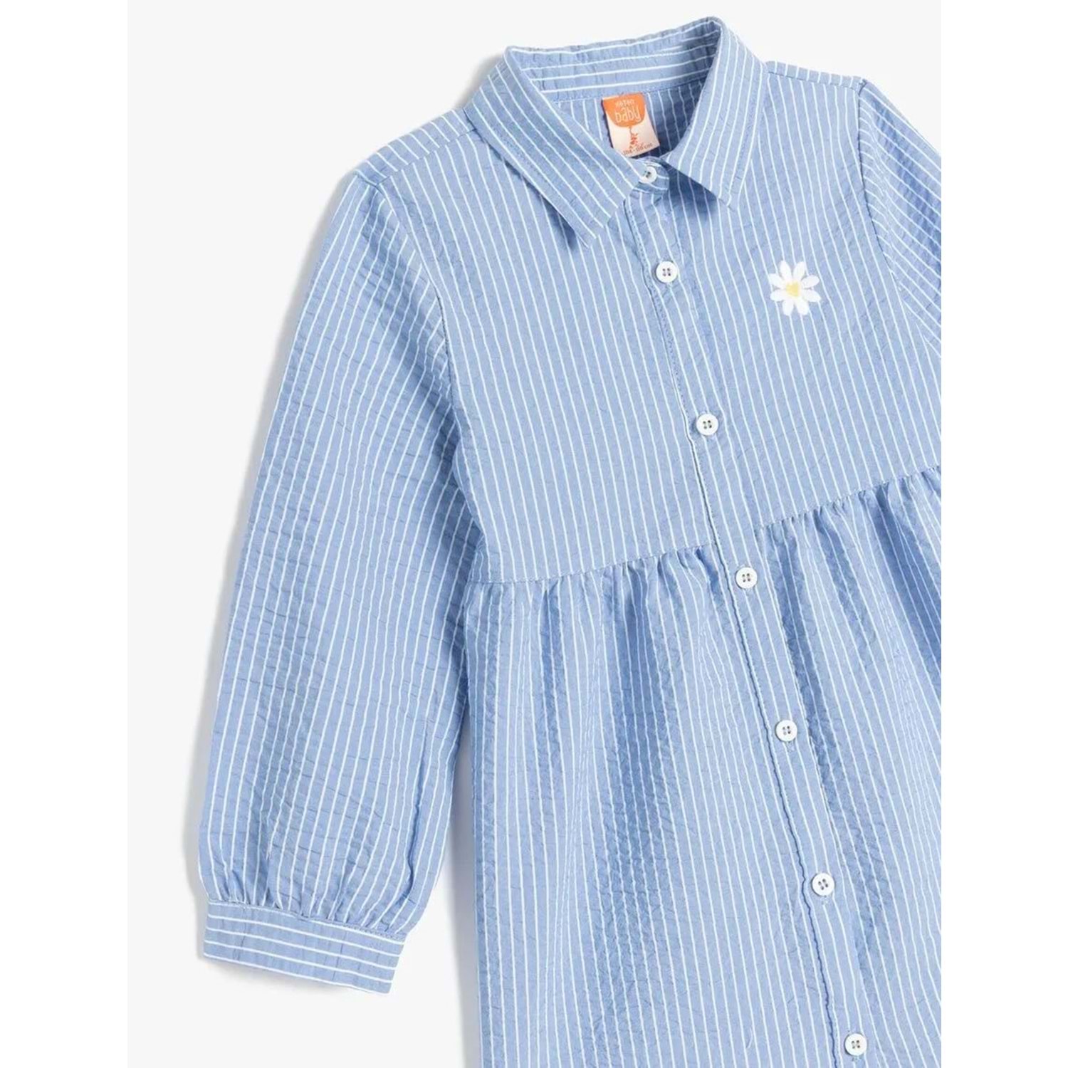 Kız Bebek Gömlek Yaka Uzun Kollu Nakış Detaylı Çizgili Elbise 5SMG80069AW - KOTON - MAVİ - 4-5 YAŞ