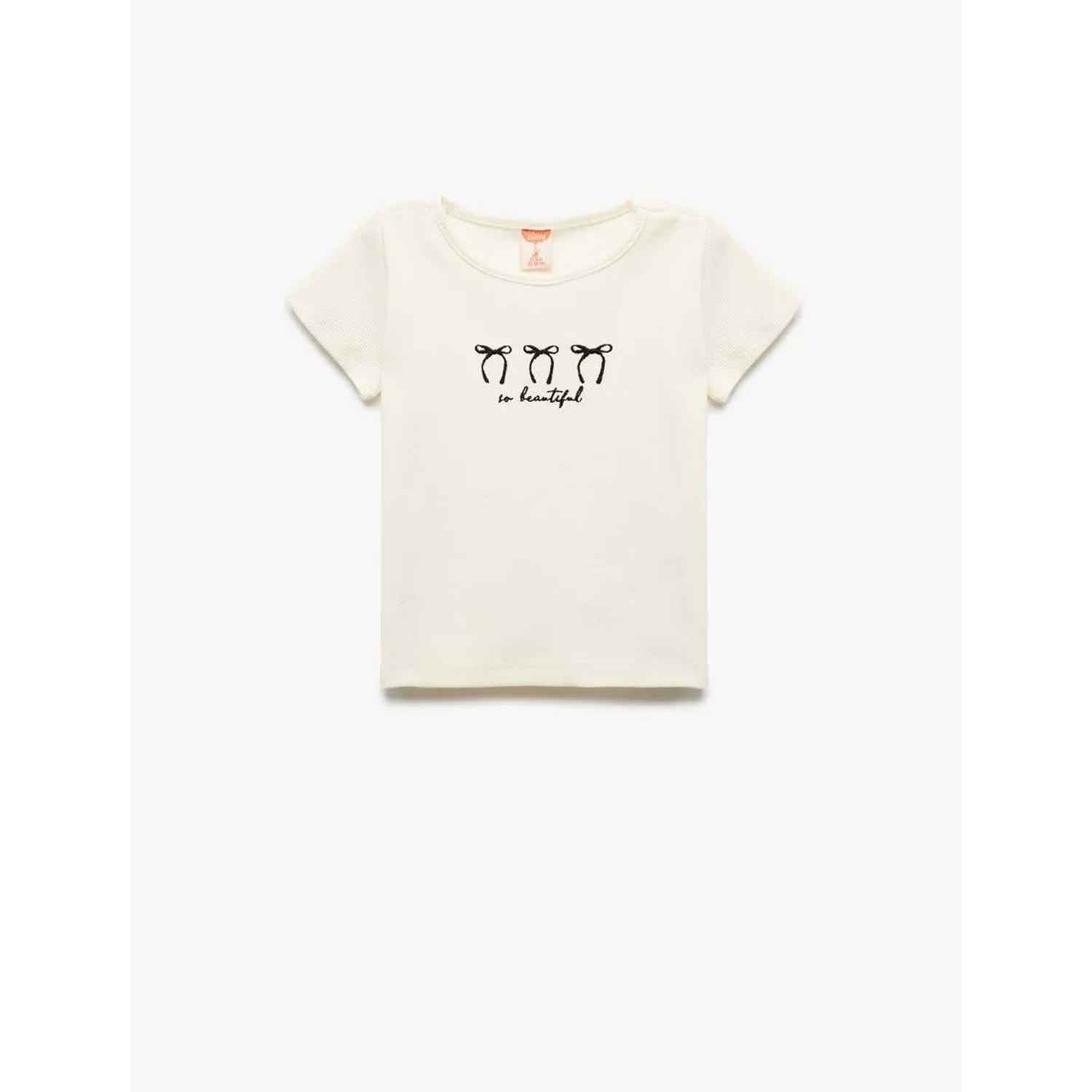 Kız Bebek Bisiklet Yaka Kısa Kollu Pamuklu Kurdele Nakışlı Tişört 5SMG10103AK - KOTON - BEJ - 9-12 AY