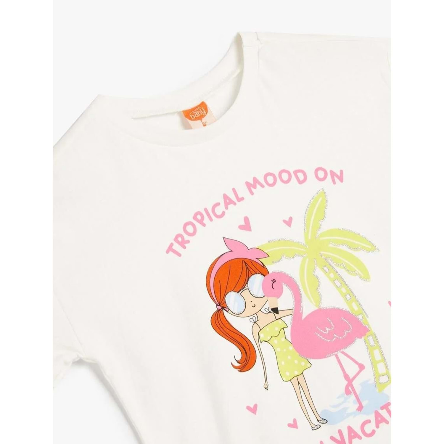 Kız Bebek Tişört Kısa Kollu Bisiklet Yaka Baskı Detaylı Pamuklu - KOTON - 4SMG10069AK - EKRU - 9-12 AY