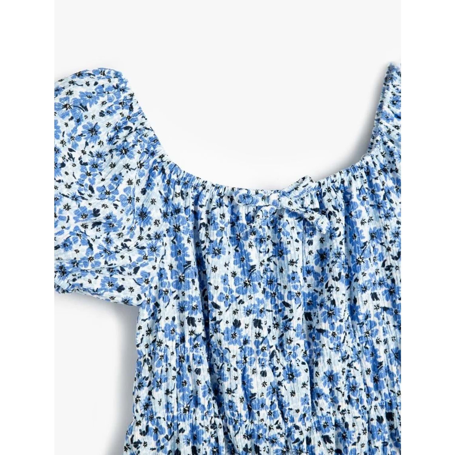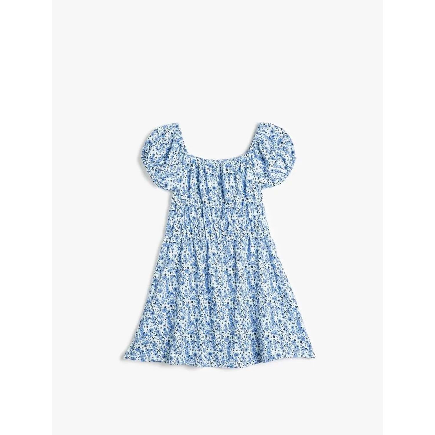 Kız Çocuk Çiçek Desenli Bisiklet Yaka Kısa Kollu Mini Elbise 5SKG80009AK - KOTON - MAVİ - 5-6 YAŞ