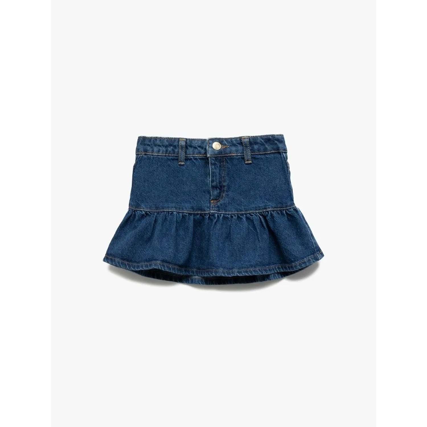 Kız Çocuk Pamuklu Fırfır Detaylı Denim Etek 5SKG70011AD - KOTON - ORTA İNDİGO - 5-6 YAŞ