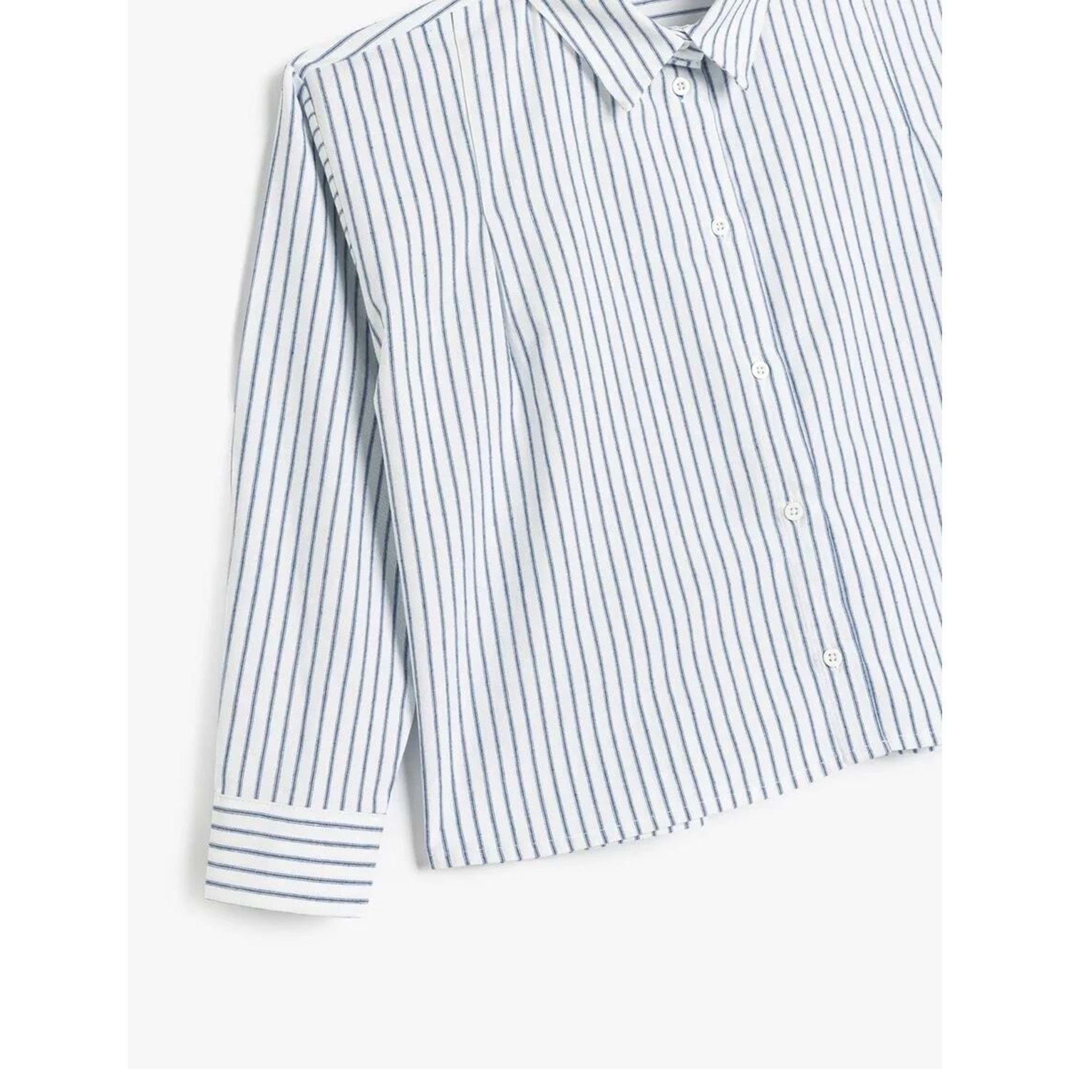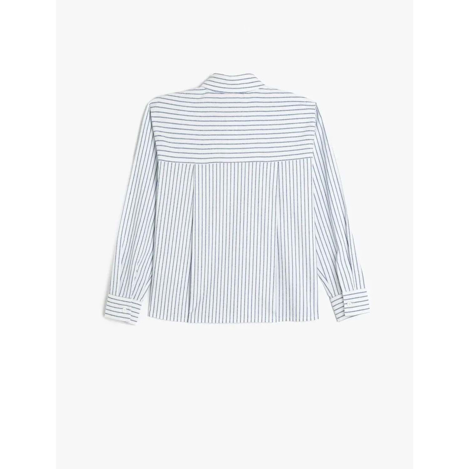 Uzun Kollu Düğme Kapamalı Viskon Karışımlı Çizgili Gömlek 5SKG60109AW - KOTON - MAVİ ÇİZGİLİ - 7-8 YAŞ
