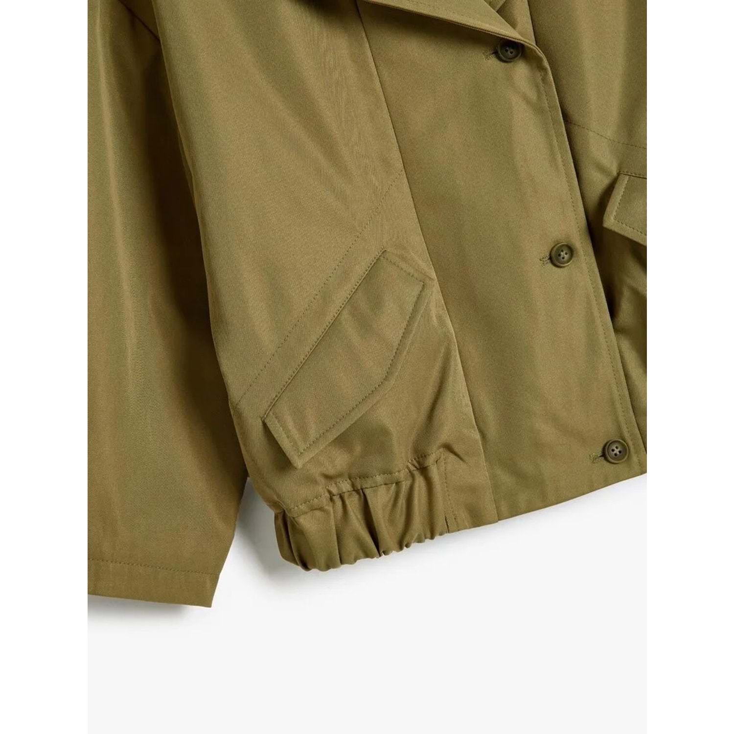 Kız Çocuk Mevsimlik Mont Kruvaze Yaka Cep Detaylı Uzun Kollu Düğmeli - KOTON - HAKİ - 9-10 YAŞ