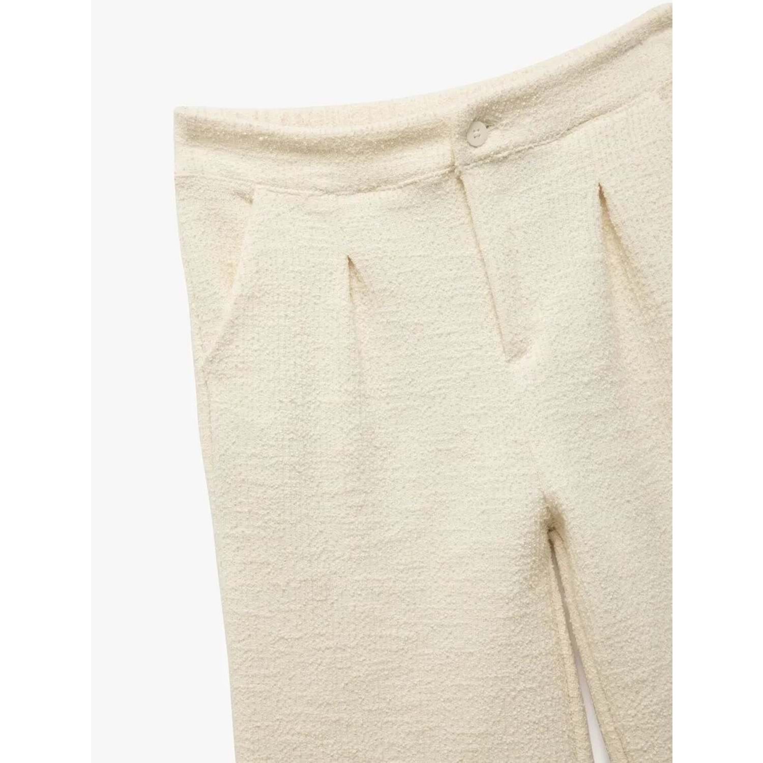 Kız Çocuk Cepli Pile Detaylı Düğmeli Bol Paça Tüvit Pantolon 5SKG40067AK - KOTON - EKRU - 11-12 YAŞ
