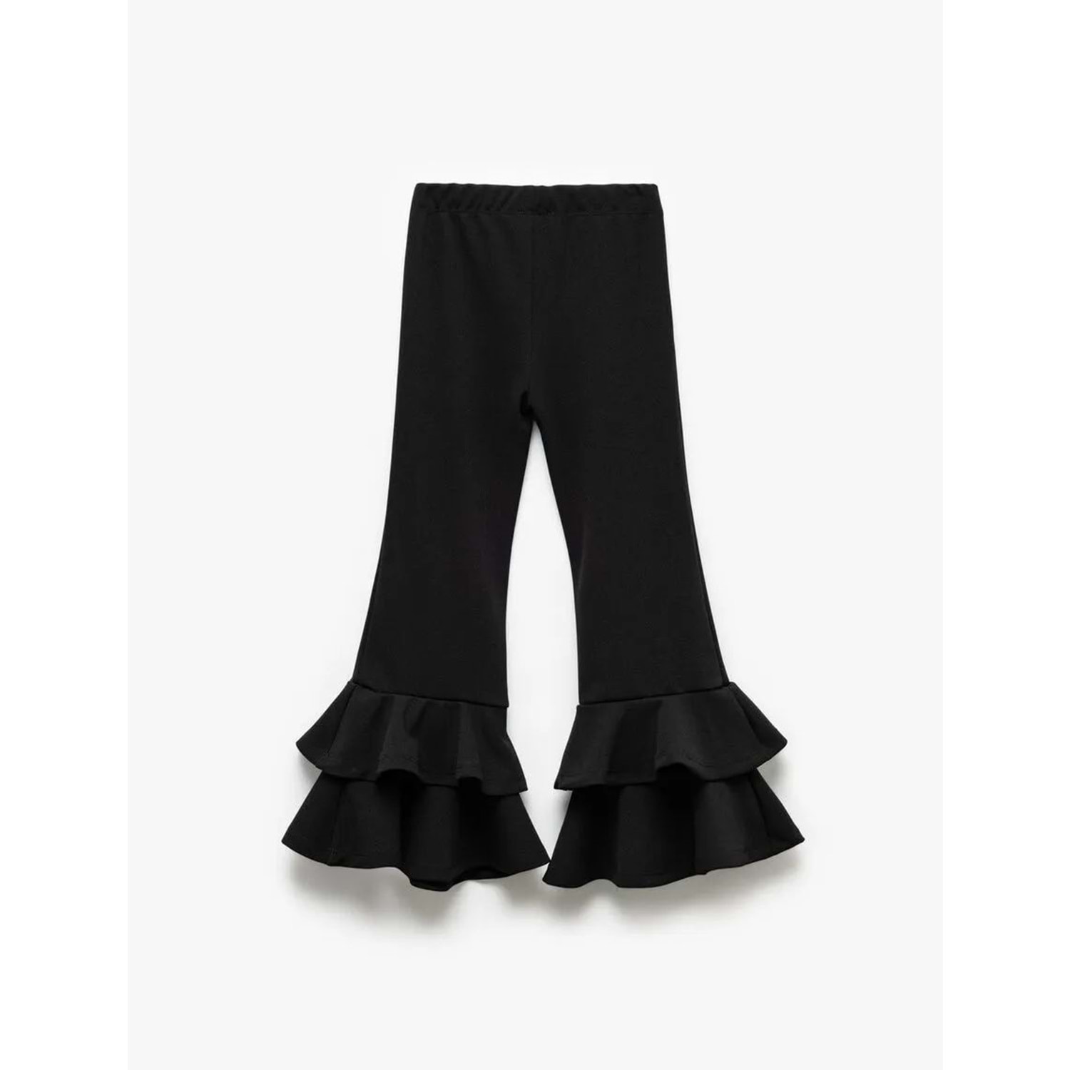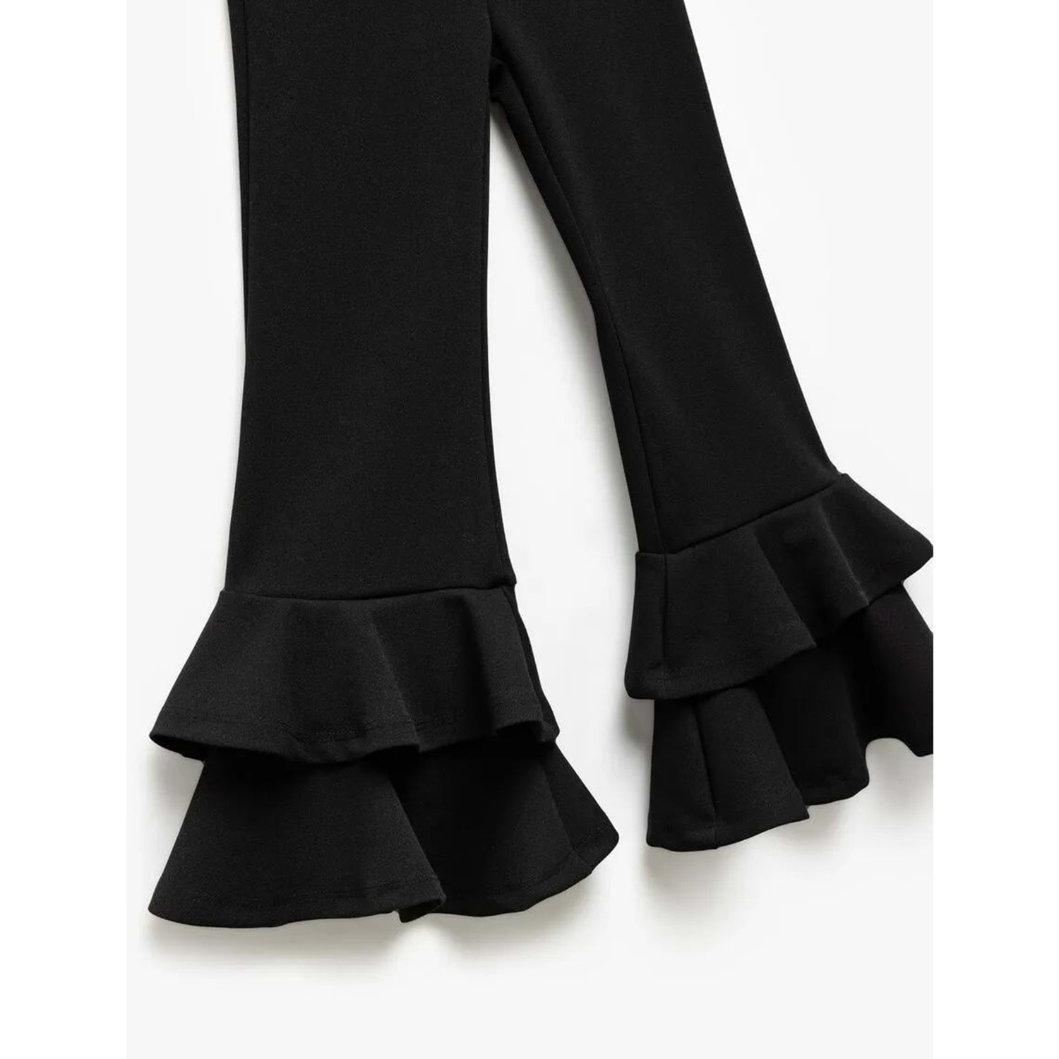 Kız Çocuk Fırfır Detaylı Dar Kesim İspanyol Paça Pantolon 5SKG40033AK - KOTON - SİYAH - 6-7 YAŞ
