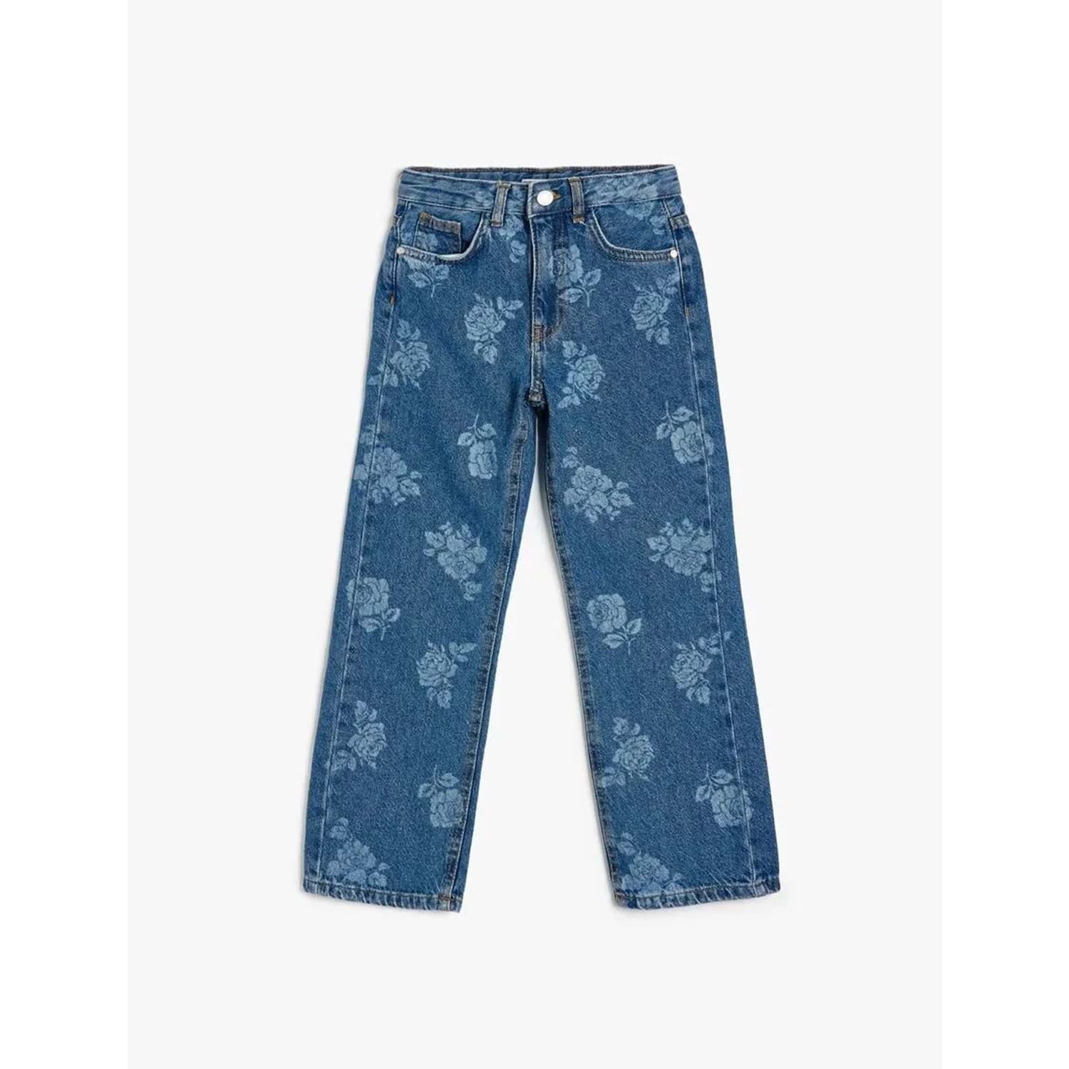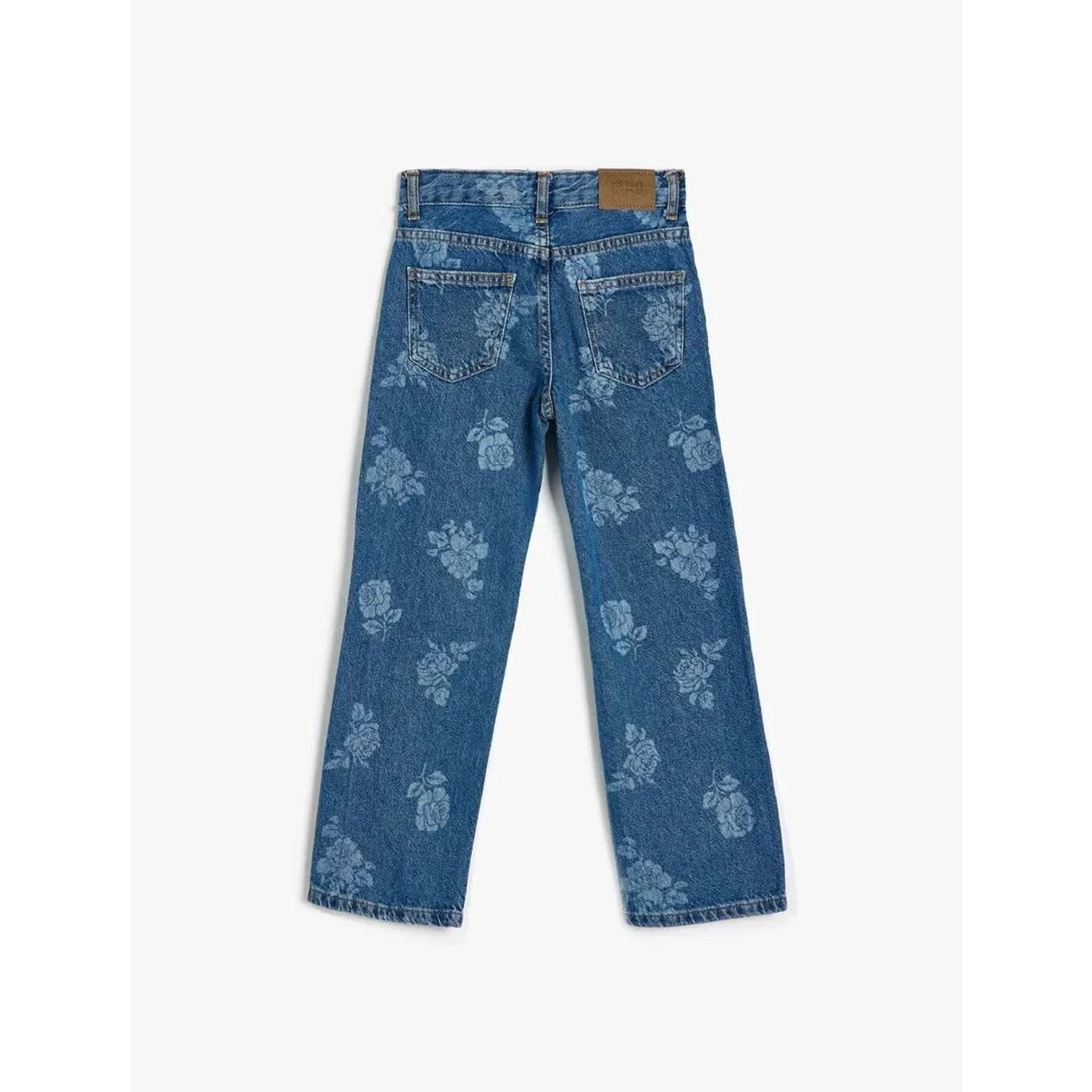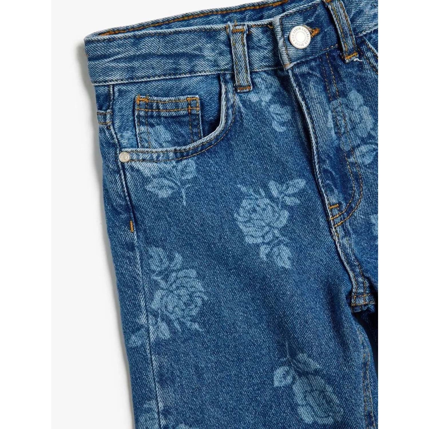 Kız Çocuk Kot Pantolon Çiçek Baskılı Cep Detaylı Pamuklu - KOTON - 5WKG40097AD - ORTA İNDİGO - 13-14 YAŞ