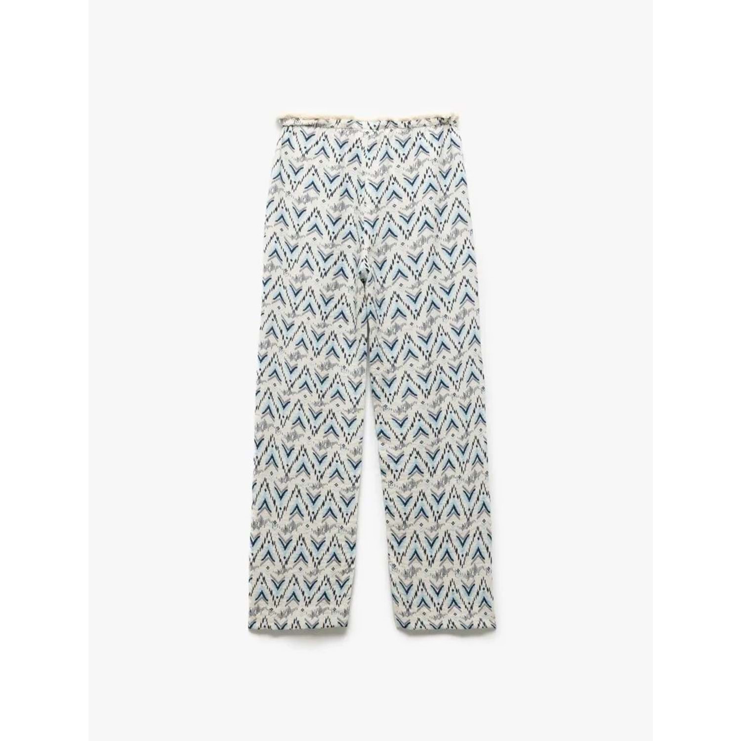 Kız Çocuk Viskon Beli Bağcıklı Desenli Düz Paça Pantolon 5SKG40007AW - KOTON - MAVİ - 5-6 YAŞ