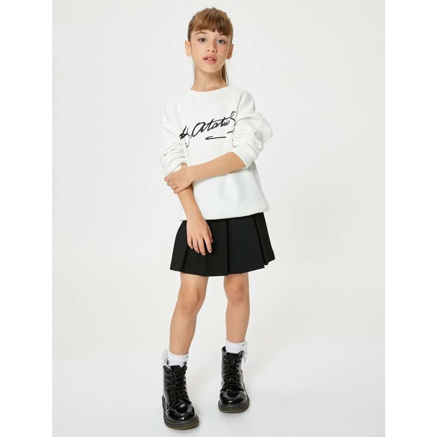 Kız Çocuk Atatürk Baskılı Sweatshirt Uzun Kollu Bisiklet Yaka 100. Yıl - KOTON - 4WKG10027AK - EKRU - 13-14 YAŞ