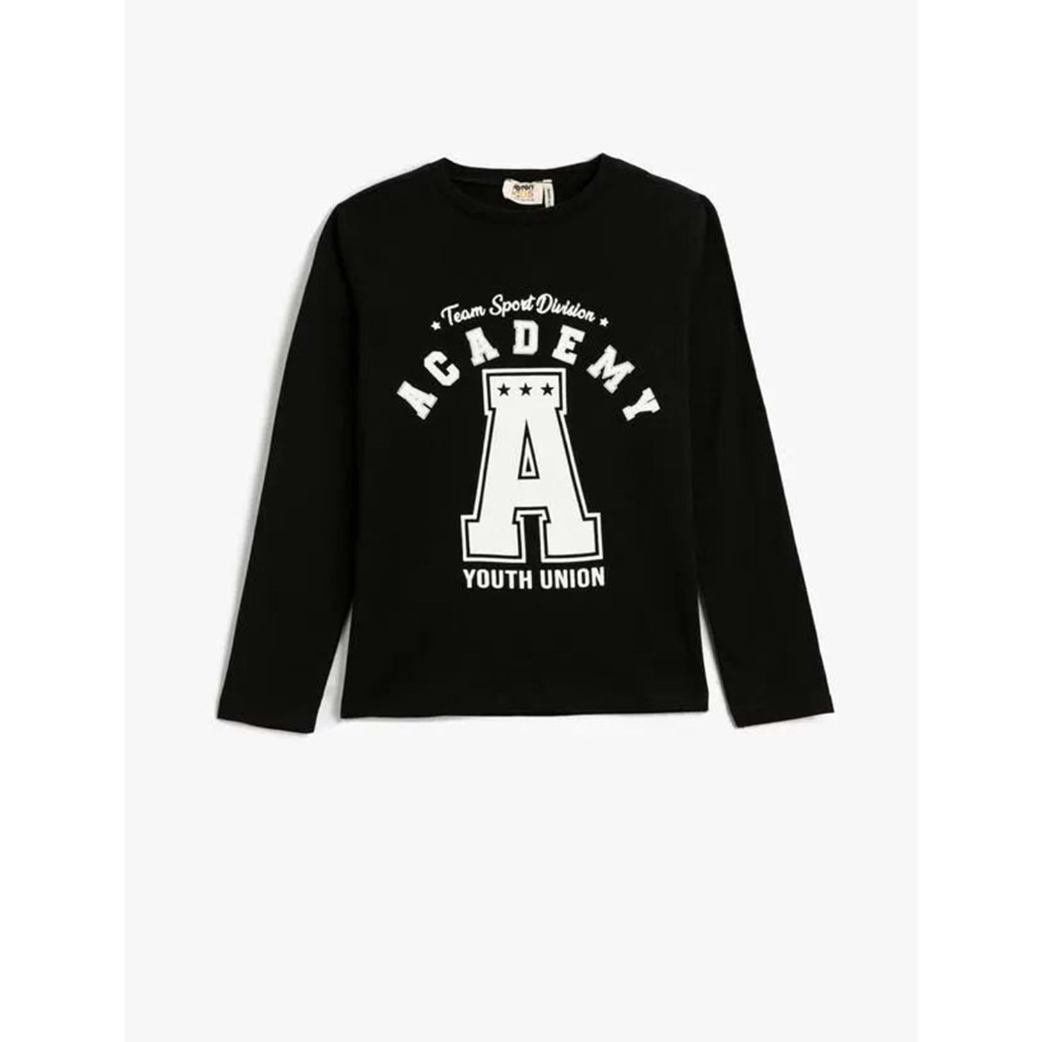 Kız Çocuk Kolej Tişört Uzun Kollu Bisiklet Yaka Baskılı Pamuklu - KOTON - 4WKG10132AK - SİYAH - 7-8 YAŞ