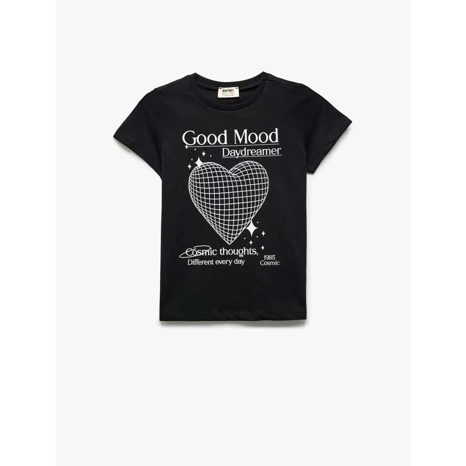 Kız Çocuk Pamuklu Kısa Kollu Bisiklet Yaka Kalp Baskılı Tişört -KOTON- SİYAH - 4-5 YAŞ