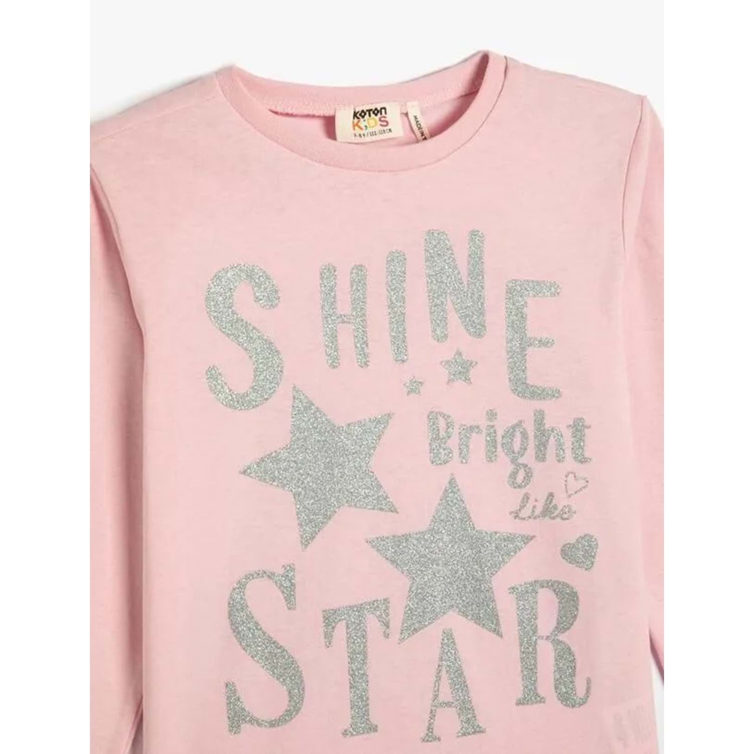 Kız Çocuk Tişört Uzun Kollu Bisiklet Yaka Yıldız Baskılı Simli Pamuklu - KOTON - 4WKG10136AK - PEMBE - 9-10 YAŞ