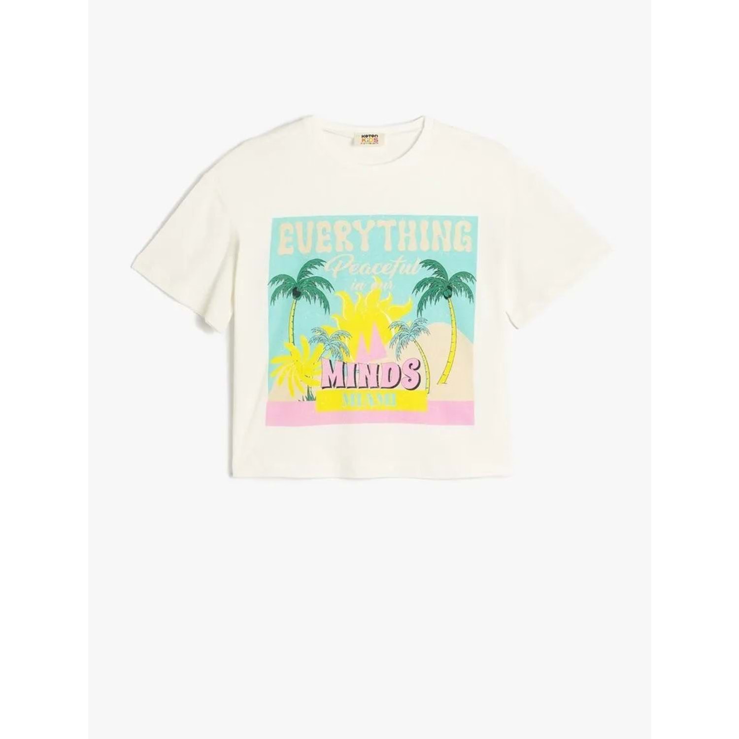 Kız Çocuk Tropik Baskılı Tişört Kısa Kollu Bisiklet Yaka 5SKG10141AK - KOTON - EKRU - 5-6 YAŞ