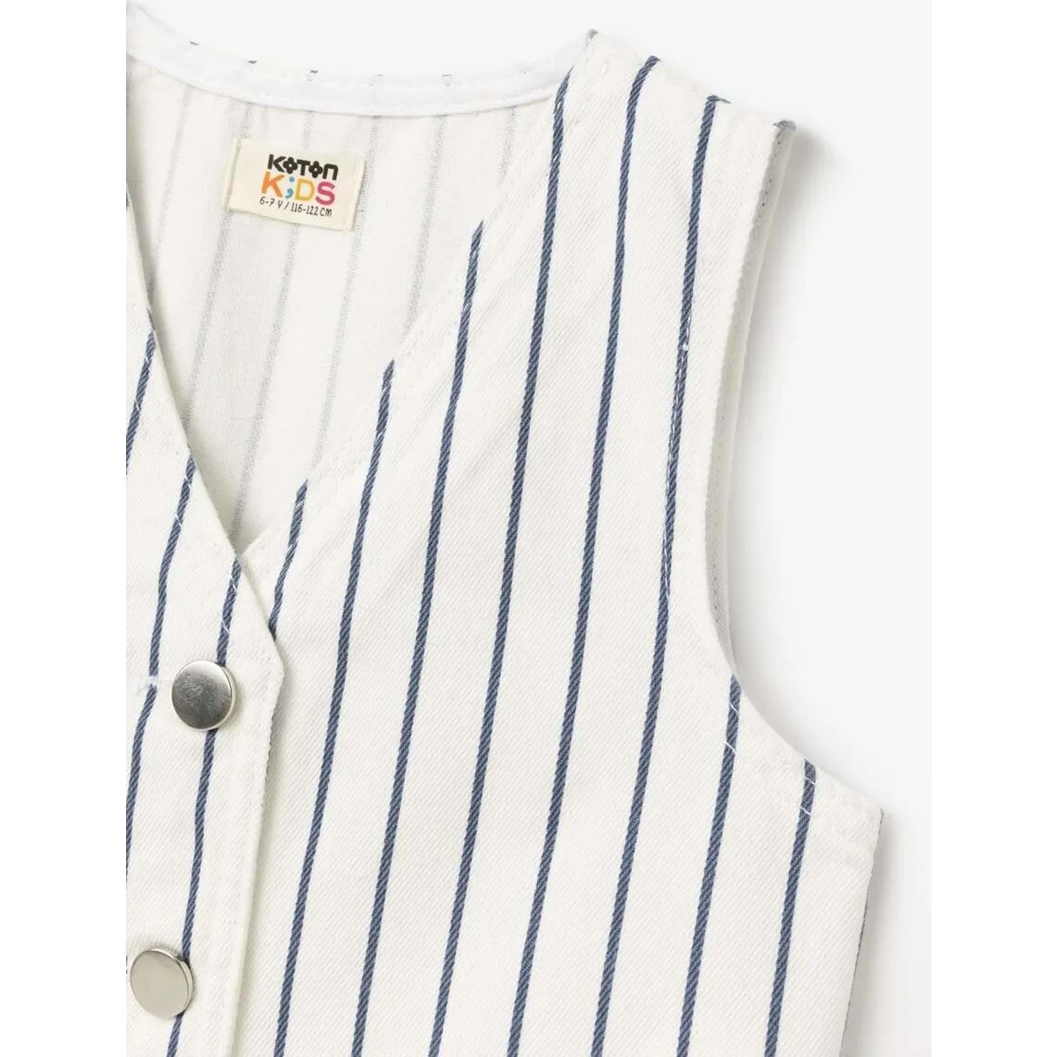 Çizgili yelek, miniklerin gardırobuna şıklık katıyor! V yaka tasarımı ile klasik bir görünüm sunan yeleğin düğme detaylarıyla pratik kullanım sağlıyor. Pek çok kombine kolaylıkla uyum sağlayan yelek, hem günlük kullanımda hem de özel günlerde rahatlıkla tercih edilebiliyor. Pamuklu yapısıyla da gün boyu konfor sağlıyor.