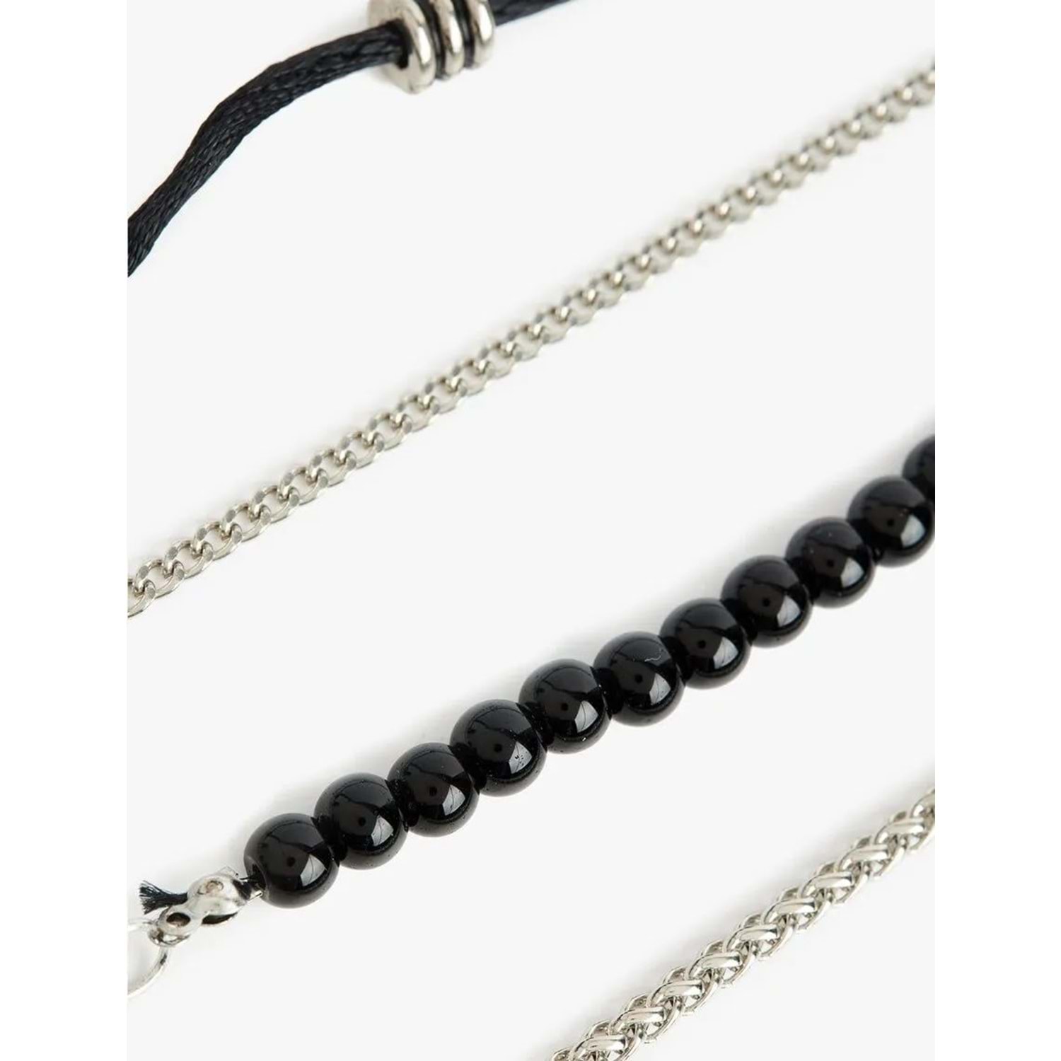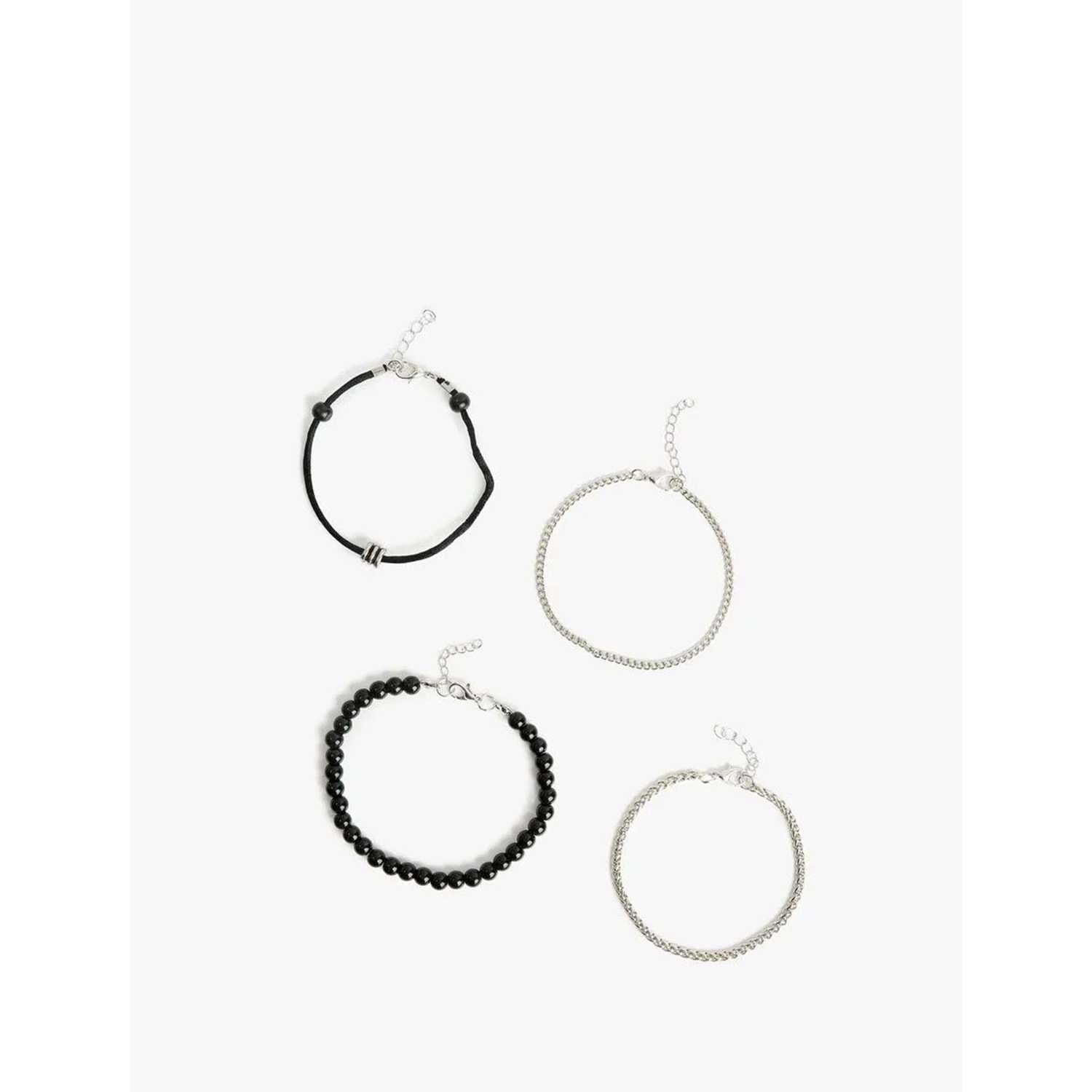 Boncuklu, 4'lü, zincir bileklik seti.