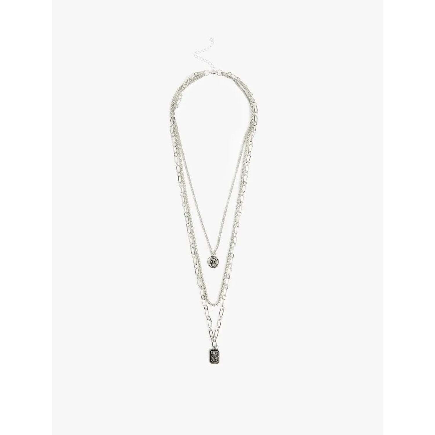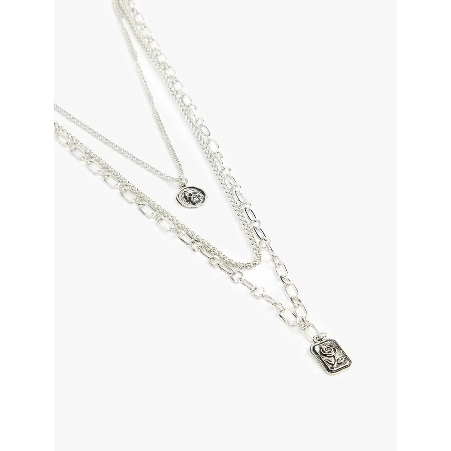 Charm detaylı, çoklu, zincir kolye.